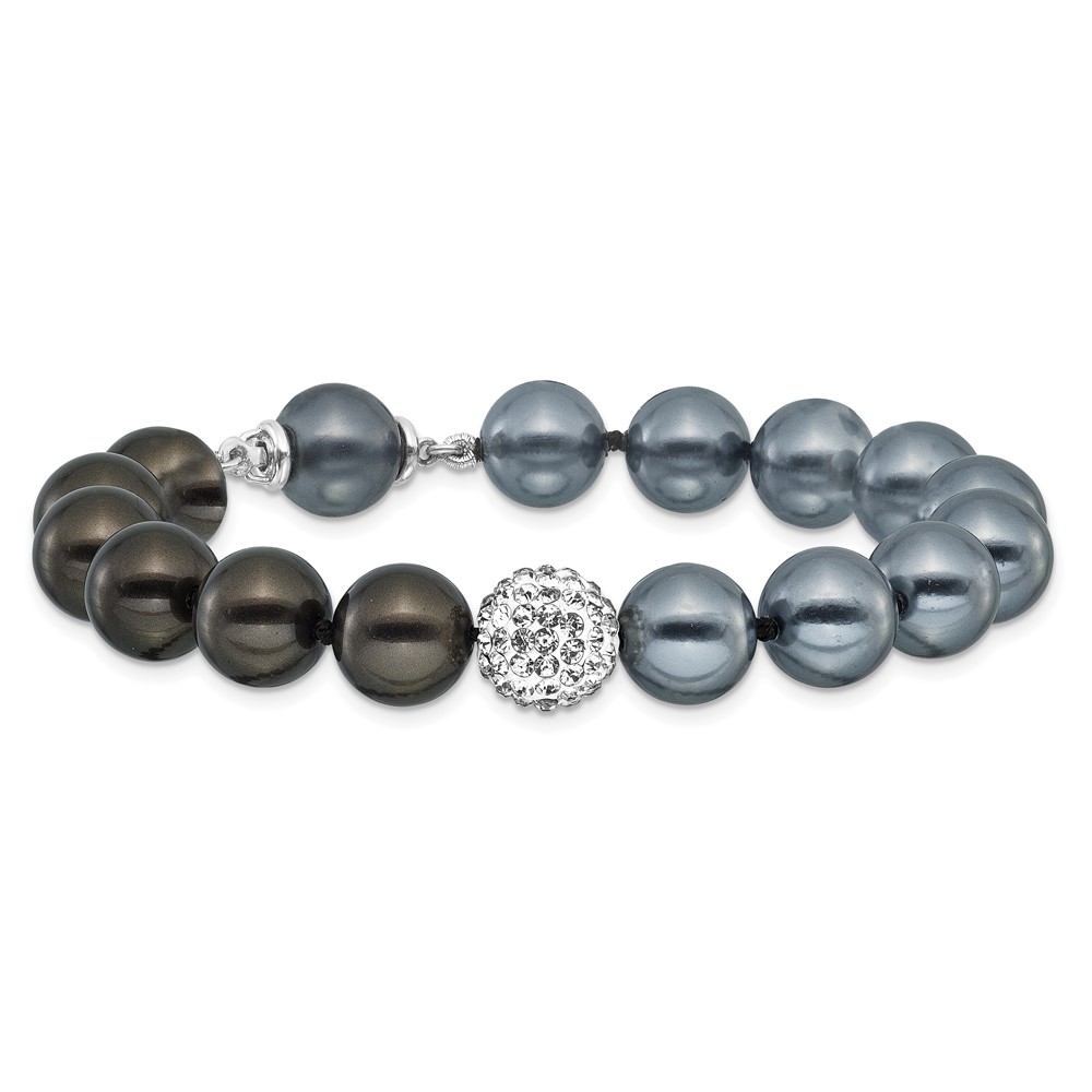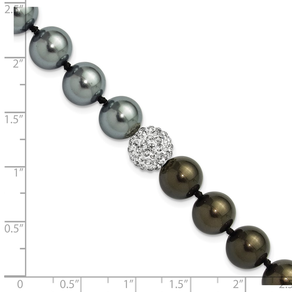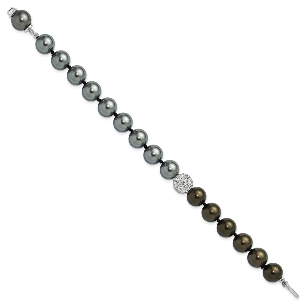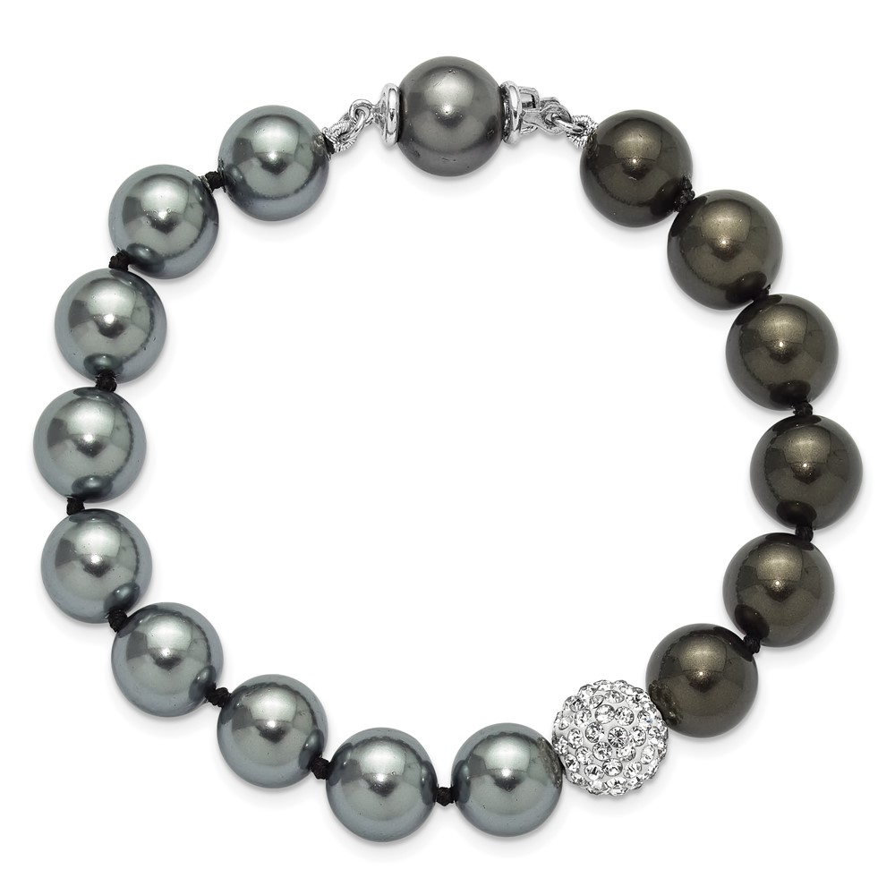 SS Majestik RH-pl 10-11mm Grey/Blk Imit Shell Pearl Crystal Bracelet