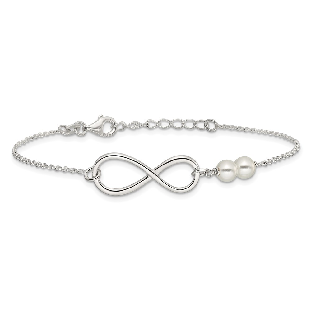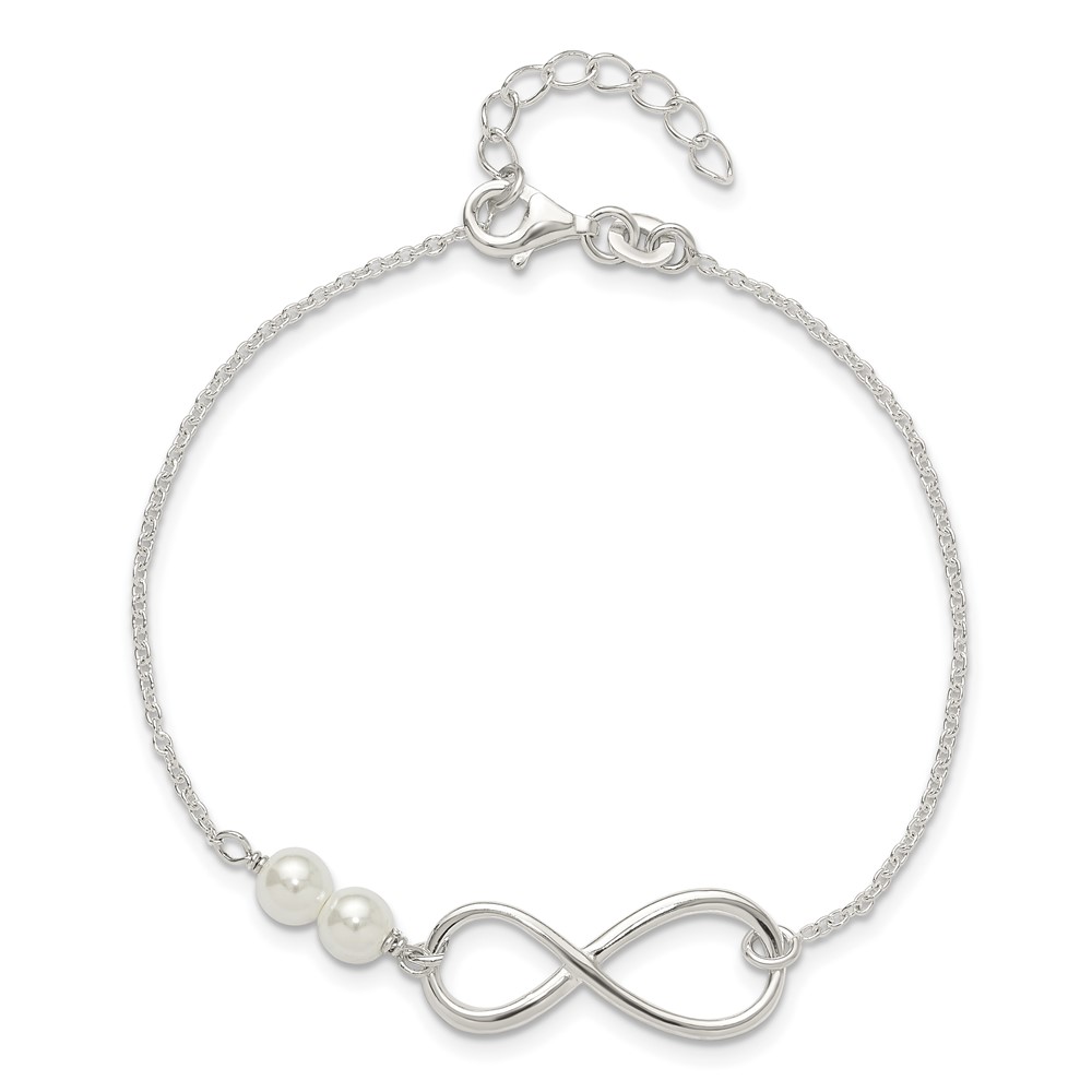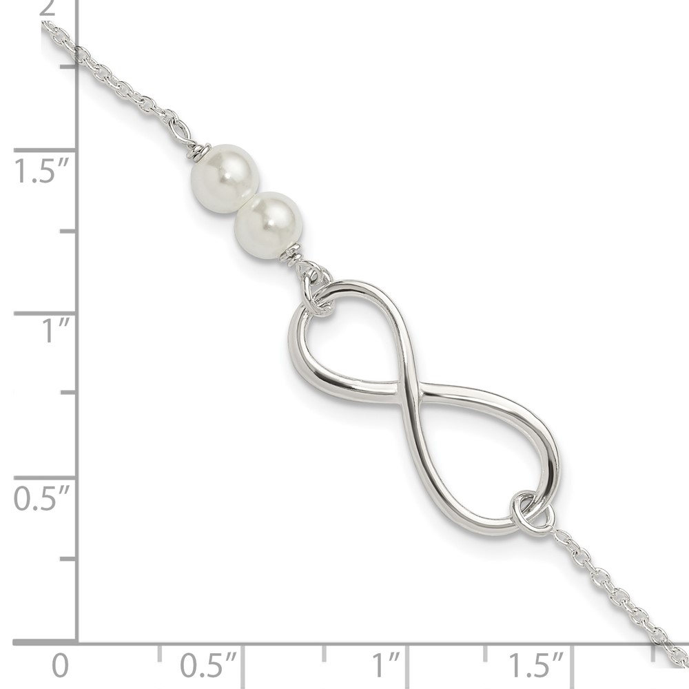 Sterling Silver Polished Simulated Pearls and Infinity with 1in ext Bracele