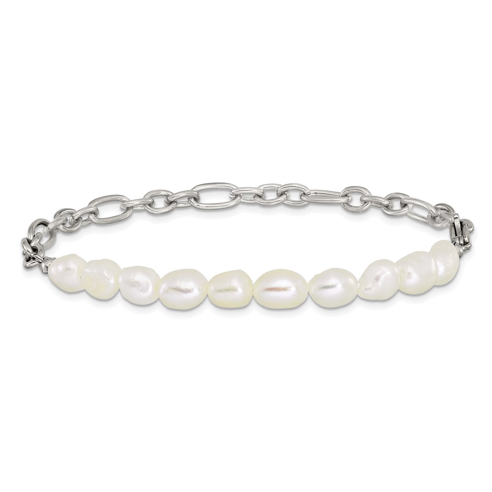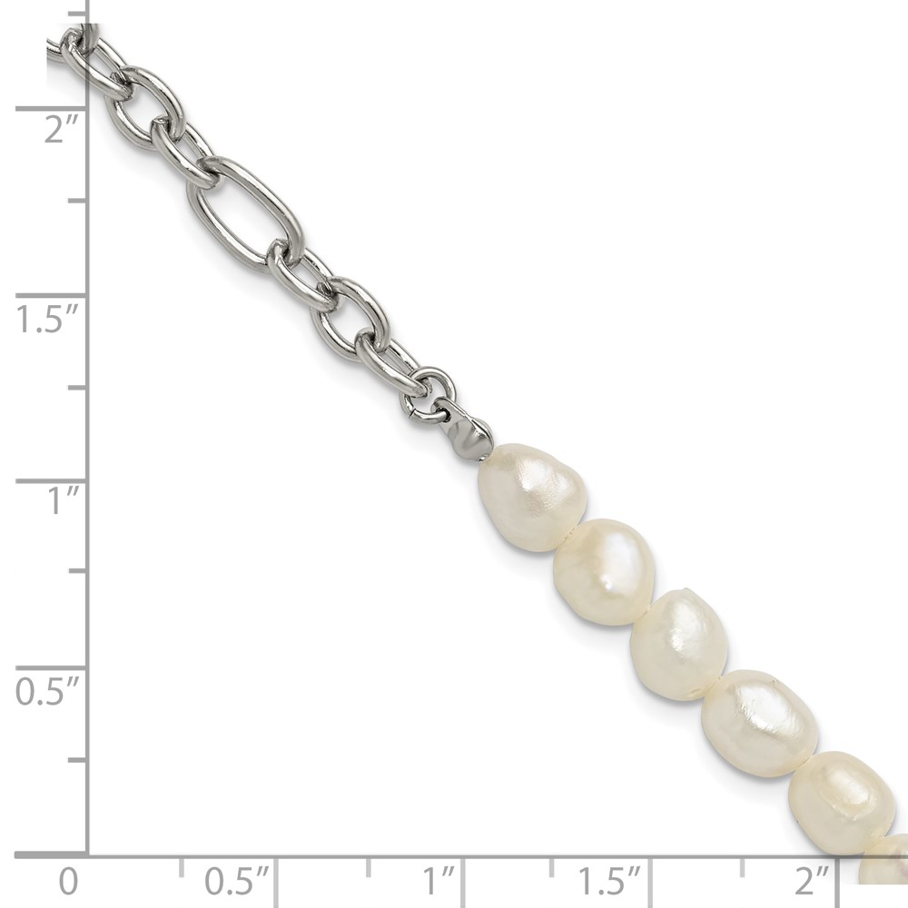 14k White Gold 6-7mm Black Round Saltwater Akoya Cultured Pearl 8 inch Bracelet