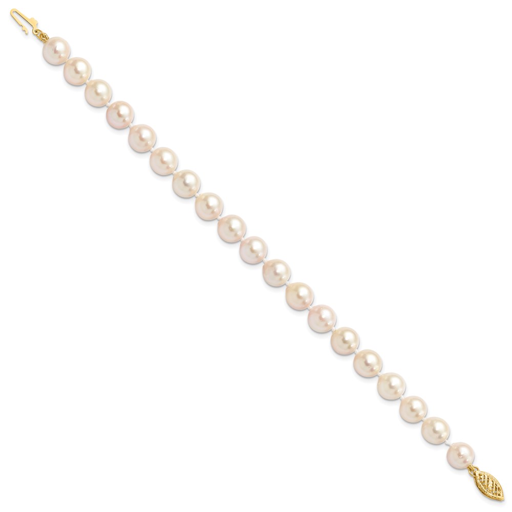 14k 7-8mm White Round Saltwater Akoya Cultured Pearl 8 inch Bracelet