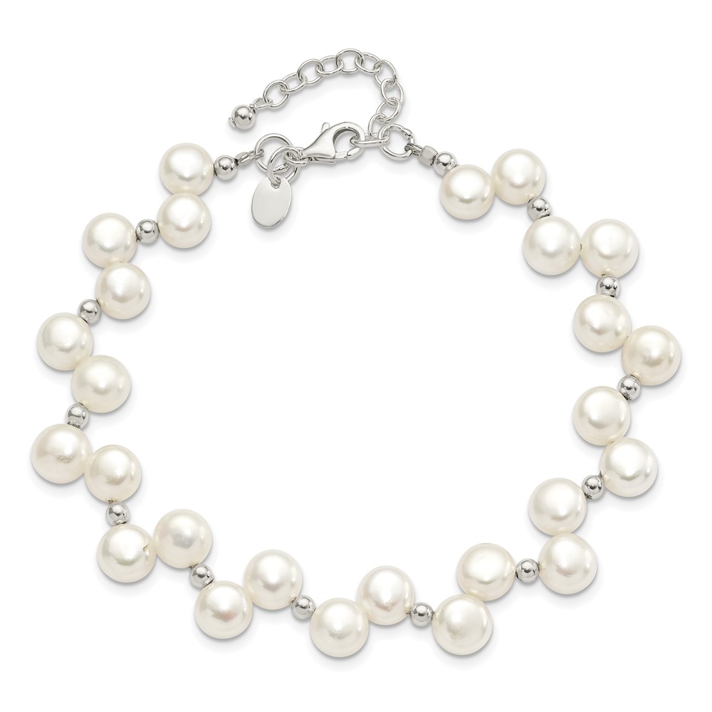 Sterling Silver FW Cultured Button Pearl 7.5in Bracelet