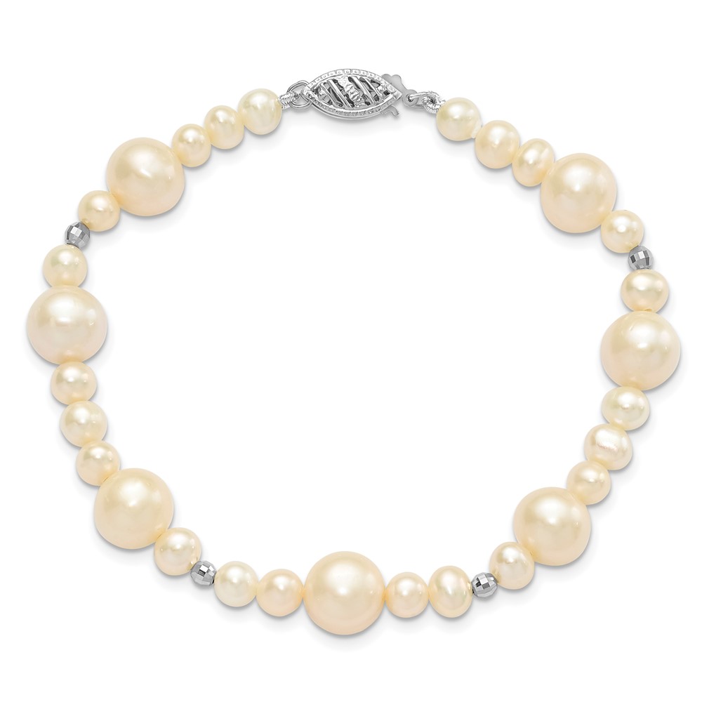 14k White Gold 5-9mm White Near-Round Freshwater Cultured Pearl Beaded 7.5 inch Bracelet