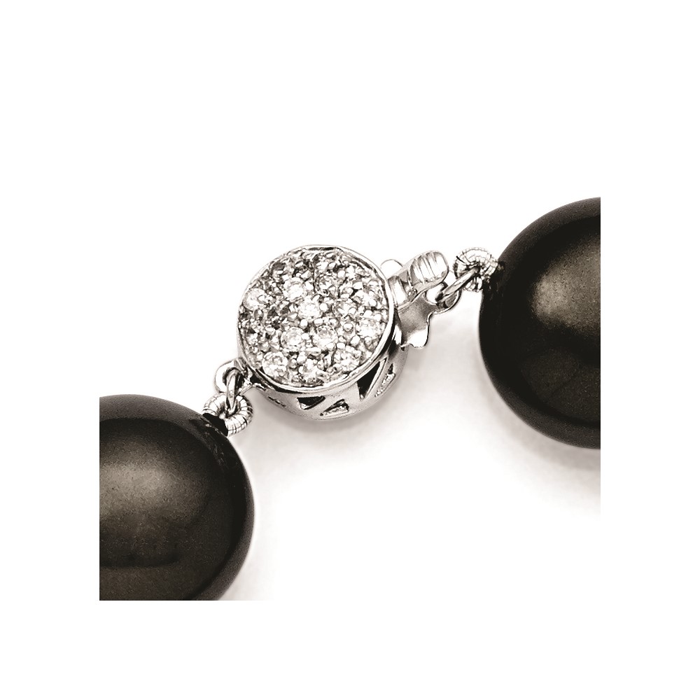 Sterling S Majestik Rh-pl 14-15mm Coin Blk Imitat Shell Pearl CZ Clasp Brac