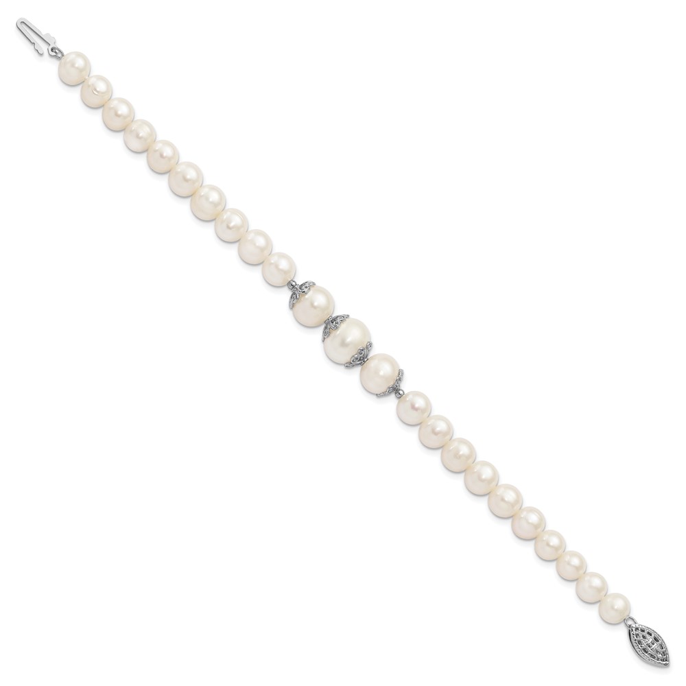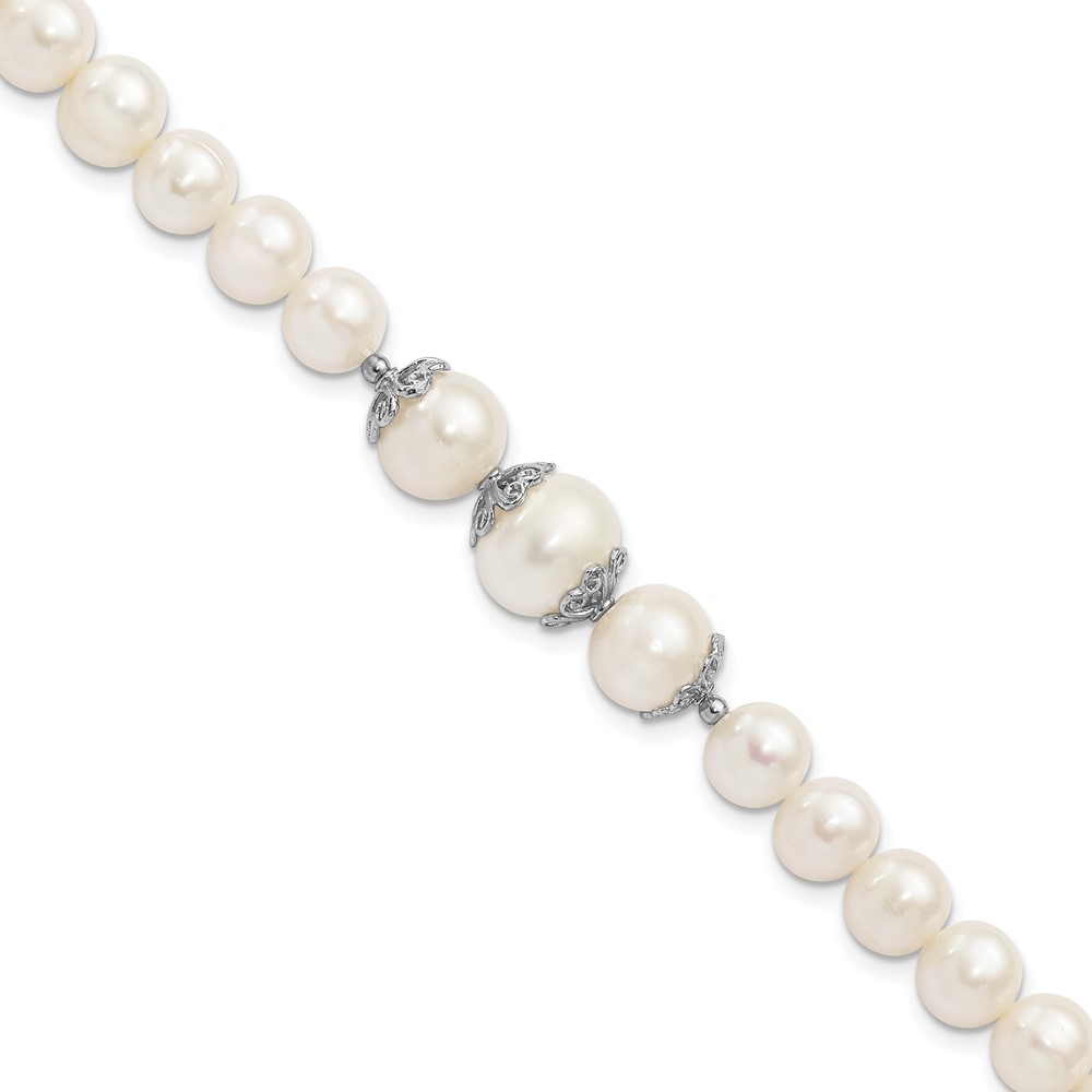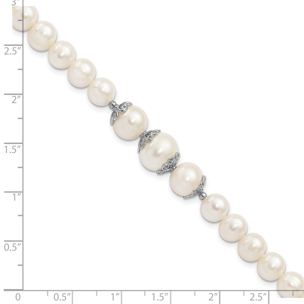 Sterling Silver Rhodium-plated 7-10mm White Near-Round Freshwater Cultured Pearl Fancy 7 inch Bracelet