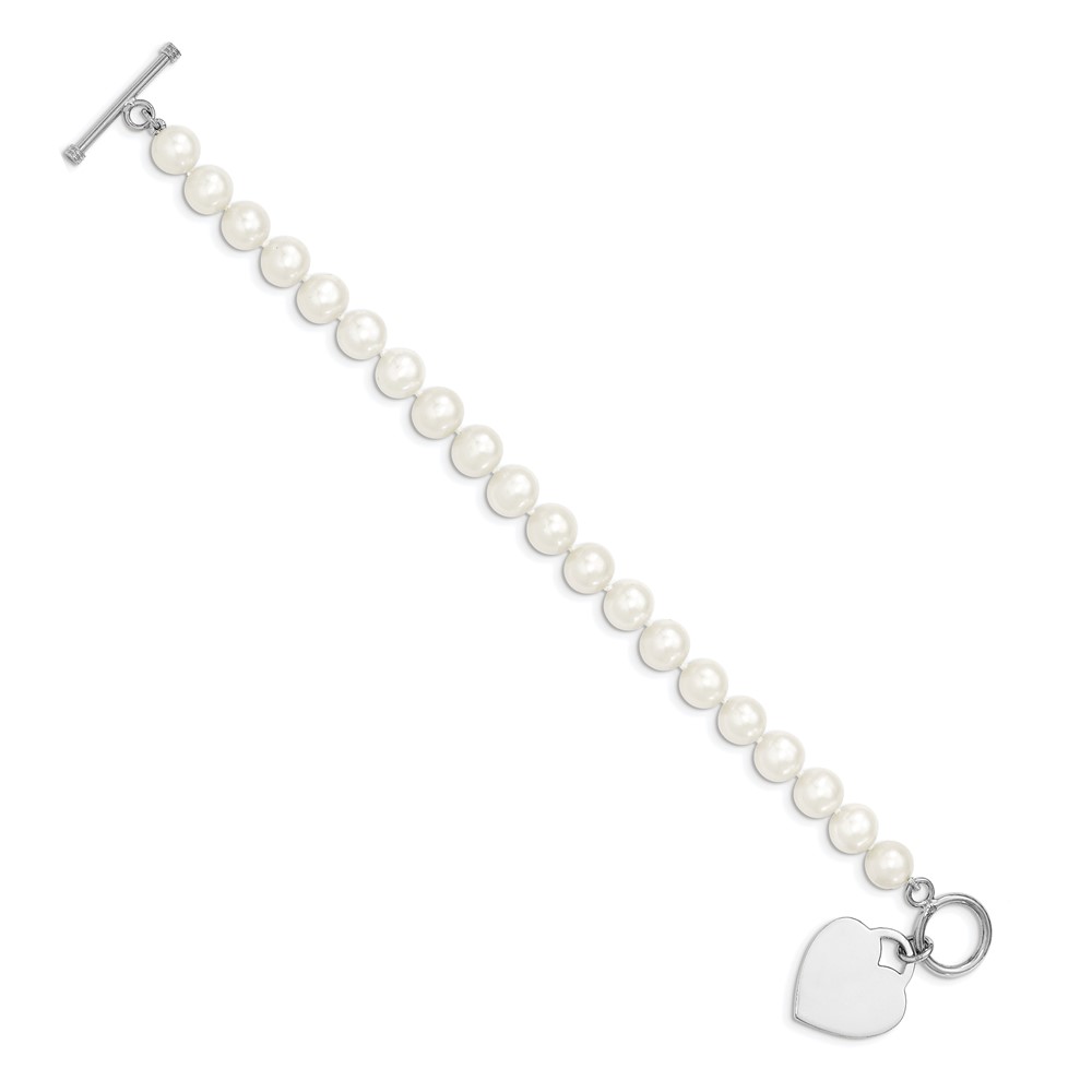 Sterling Silver Rhodium-plated 8-9mm White Near-Round Freshwater Cultured Pearl Heart Toggle 7.5 inch Bracelet