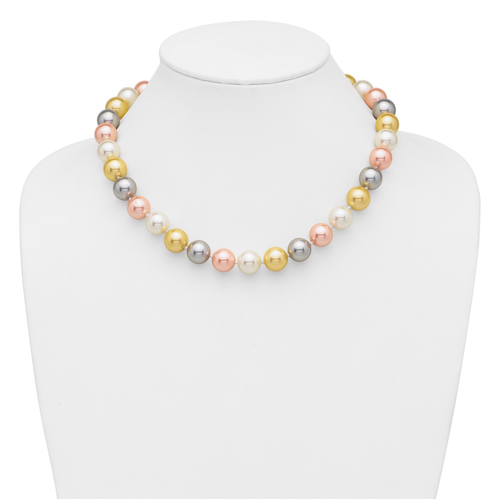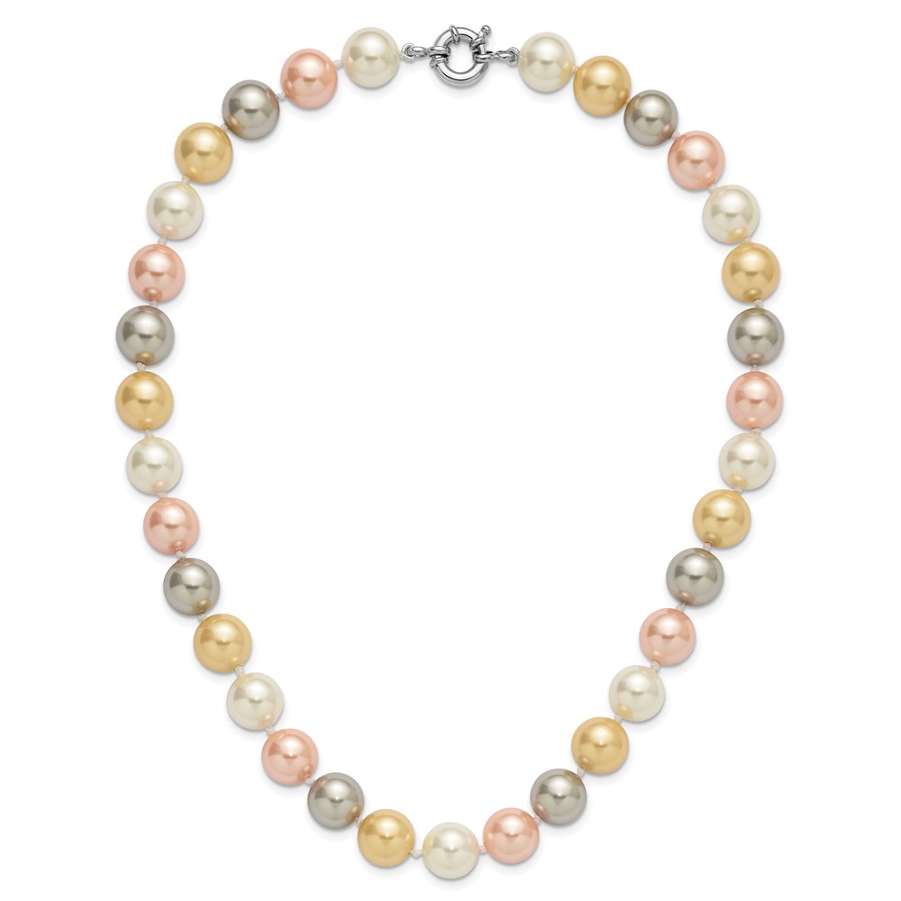 Majestik Sterling Silver Rhodium-plated 12-13mm Multi-Color Imitation Shell Pearl Hand-knotted Necklace