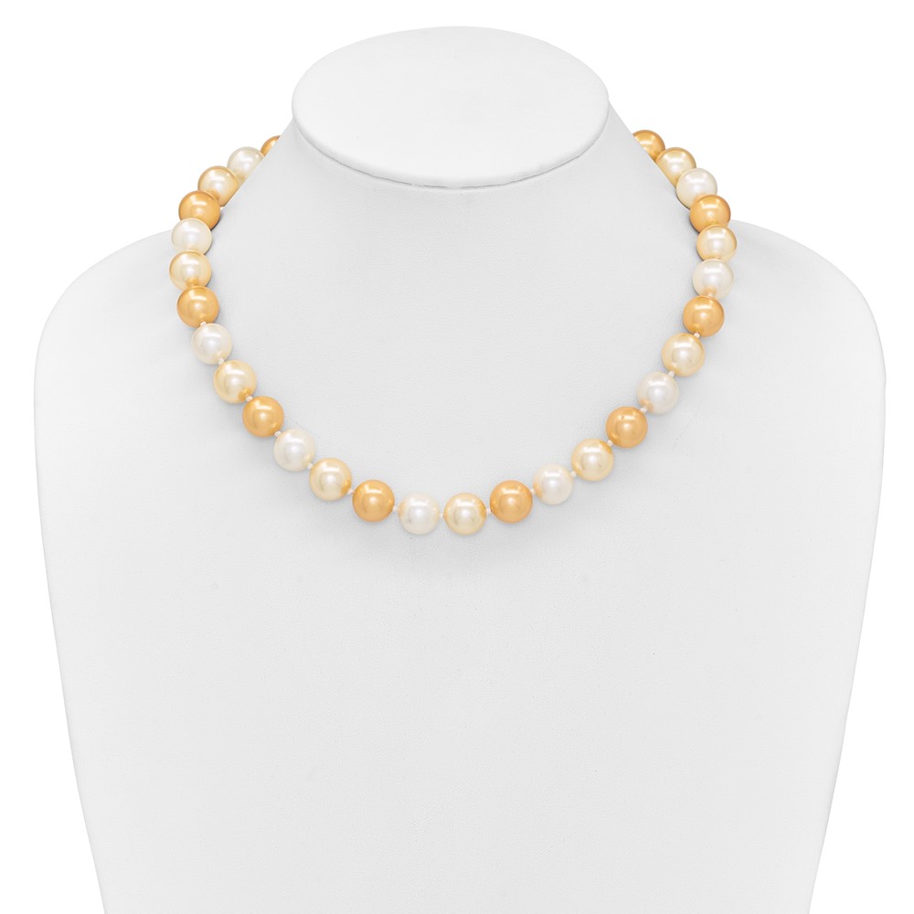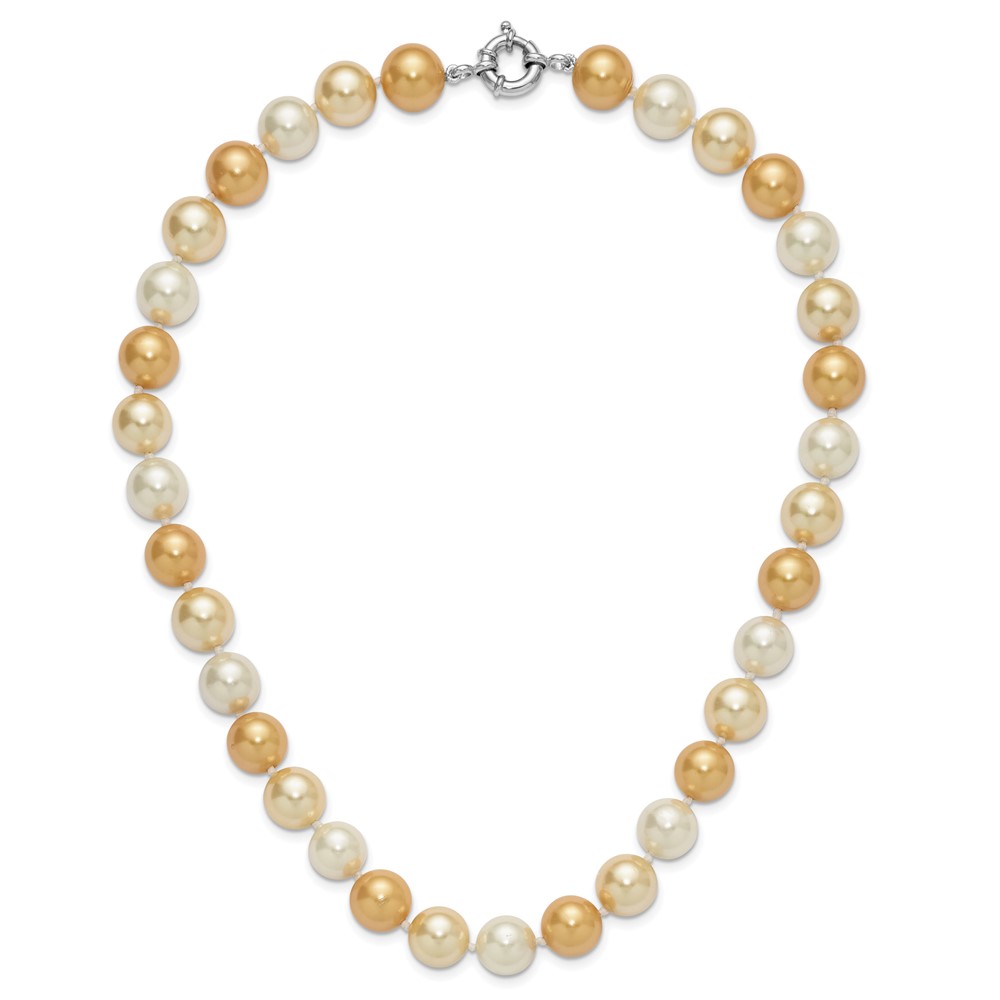 Majestik Sterling Silver Rhodium-plated 12-13mm Yellow and White Imitation Shell Pearl Hand-knotted Necklace