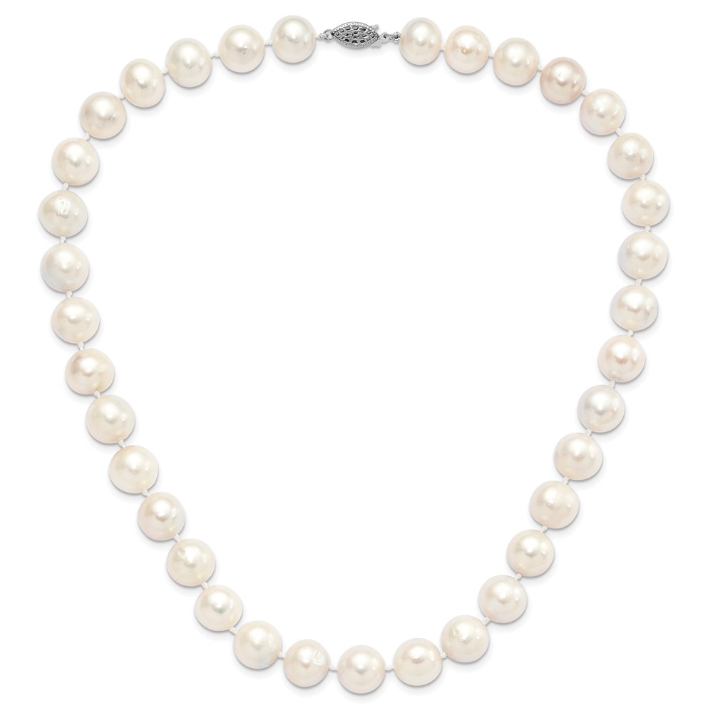 Sterling Silver Rhodium-plated 12-13mm White Near-Round Freshwater Cultured Pearl 18 inch Necklace