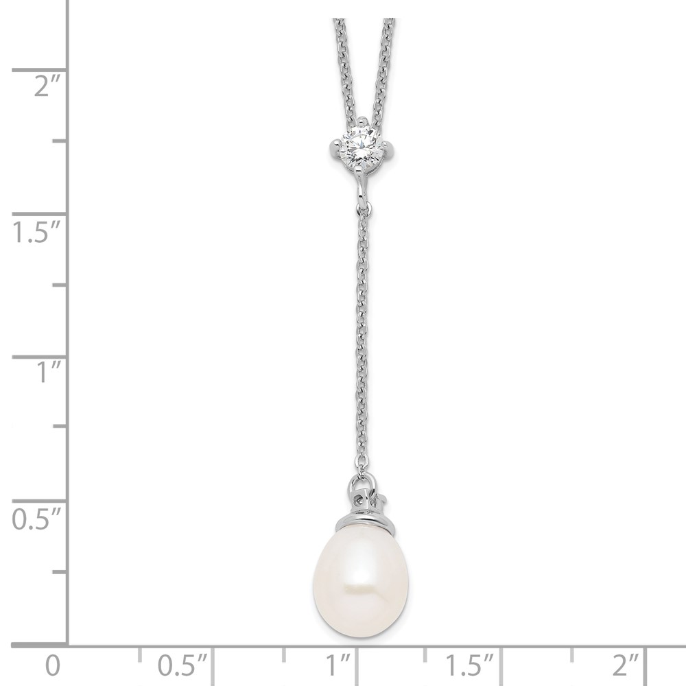 Sterling Silver Rhodium-plated 8-9mm White Teardrop Freshwater Cultured Pearl and CZ Drop 18 inch Necklace