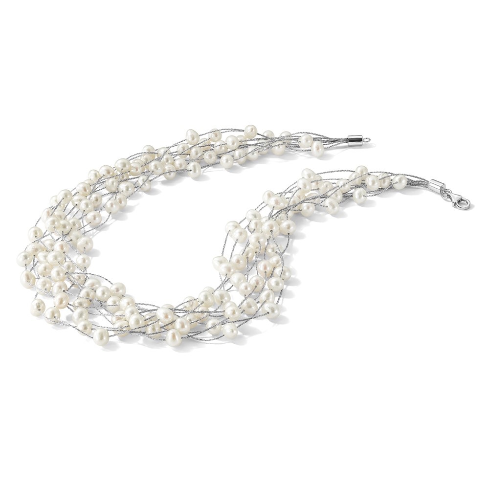 Sterling Silver Rhodium-plated 6-8mm White Semi-Round Freshwater Cultured Pearl Multi Strand 15 inch Necklace