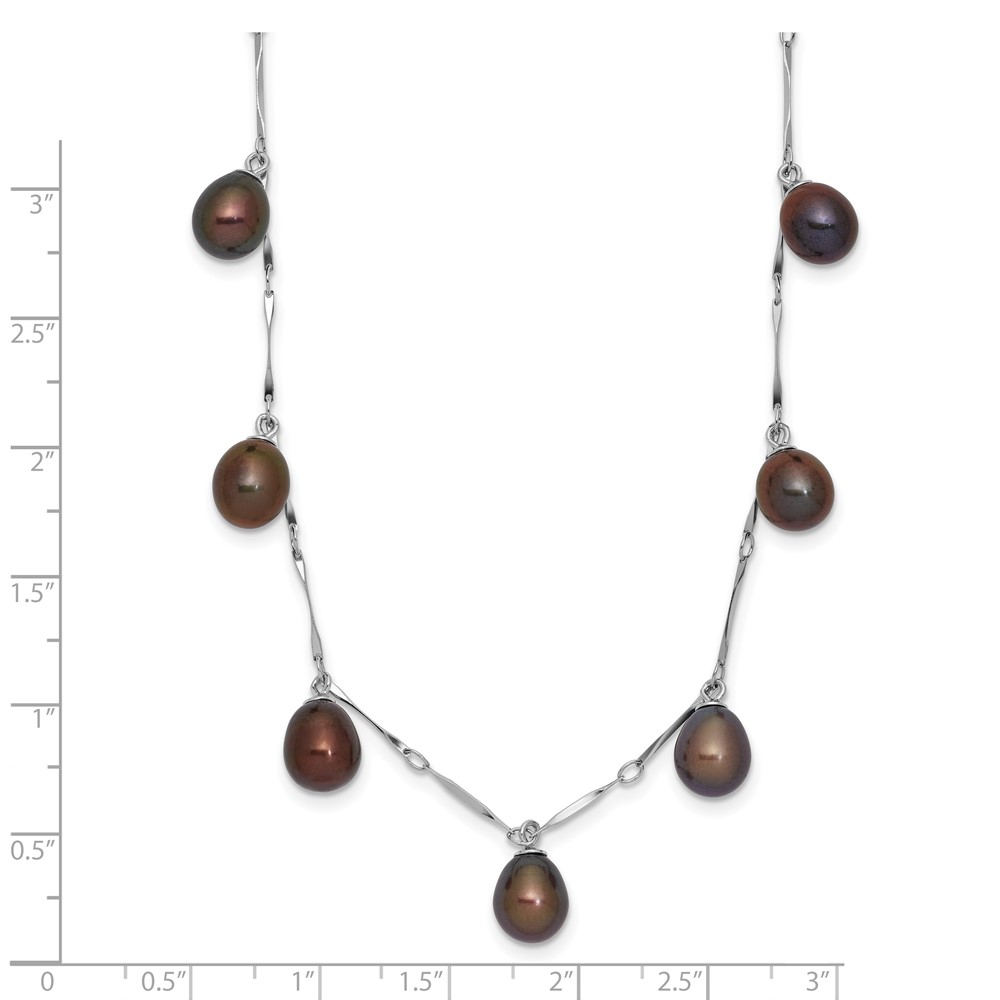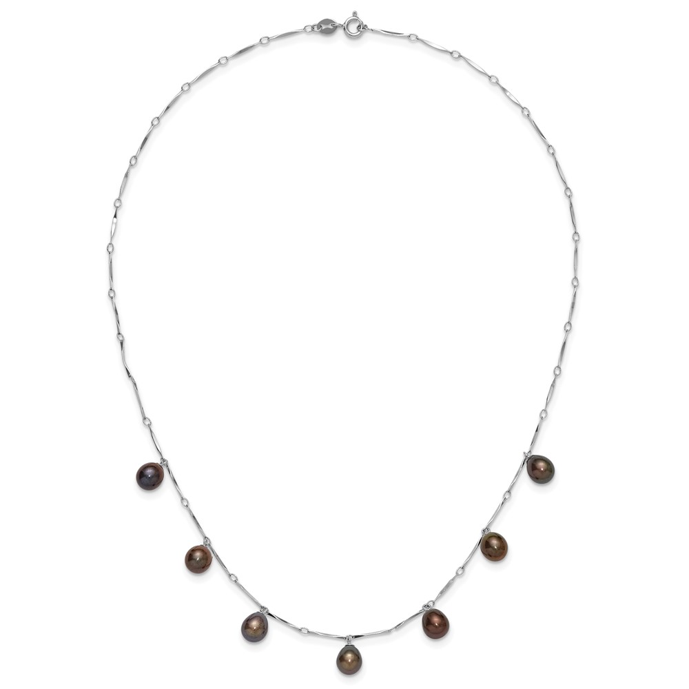 Sterling Silver Rhodium-plated 7-8mm Black Teardrop Freshwater Cultured Pearl Dangle 7-Station 17.5 inch Necklace