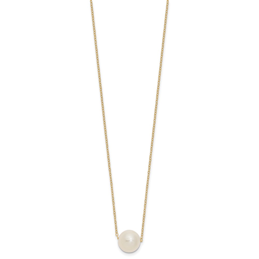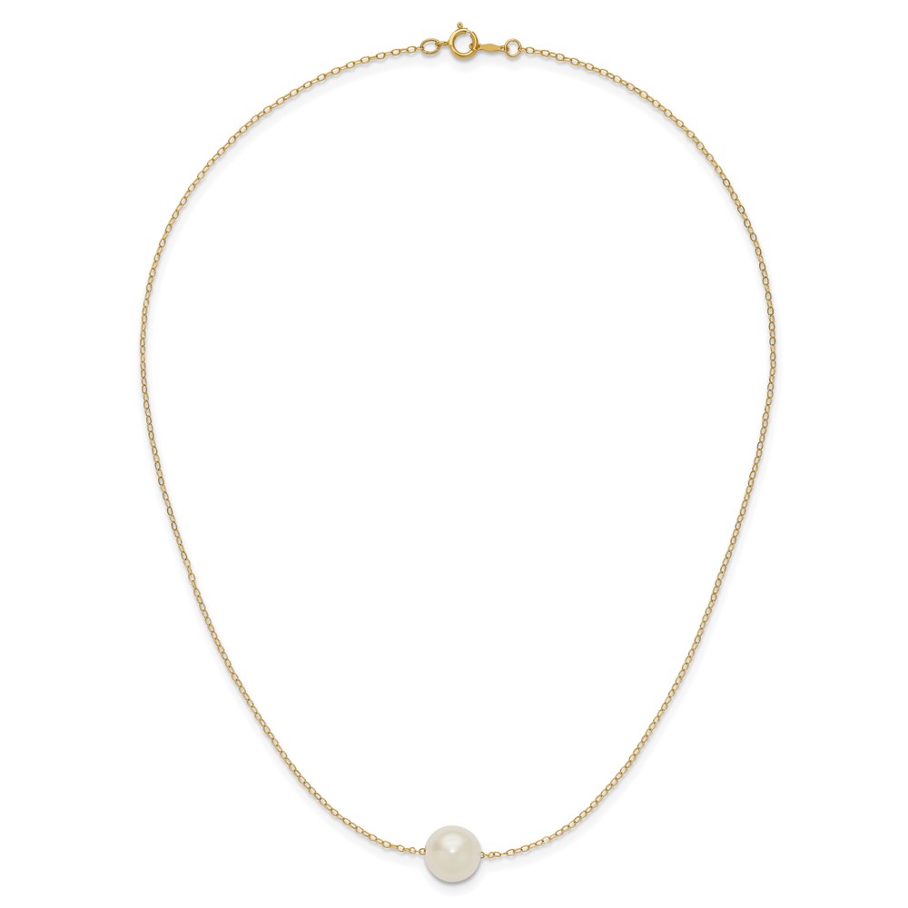 14k Polished 9-10mm Round White Akoya Saltwater Cultured Pearl 18 inch Necklace