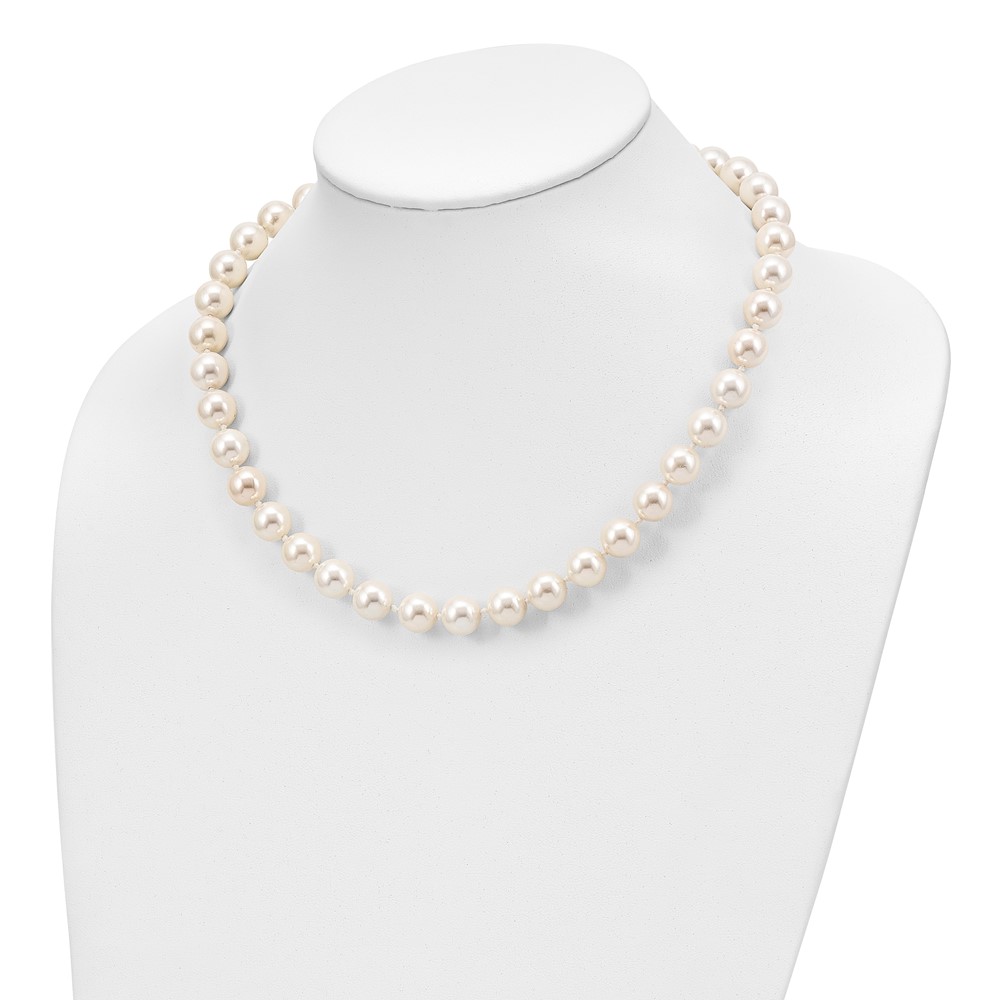 Majestik Sterling Silver Rhodium-plated 12-13 White Imitation Shell Pearl Hand-knotted CZ Fancy Clasp Necklace