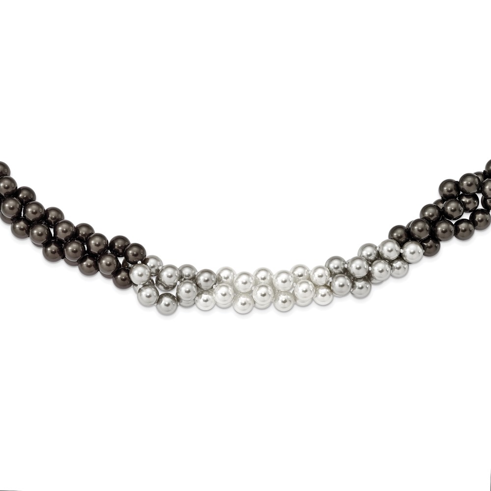 Sterling Silver Majestik Rh-pl 3 Row 10-11mm Gry/Wt/Blk Shell Necklace