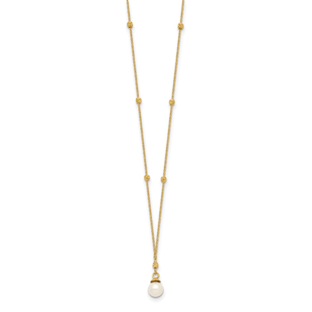 14k 4-5mm White Freshwater Cultured Pearl with Diamond-cut Beads 18 inch Necklace