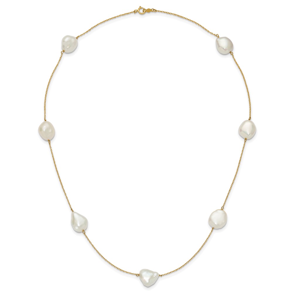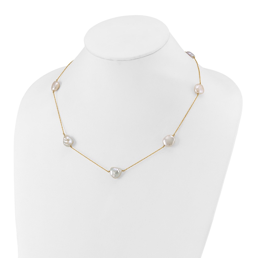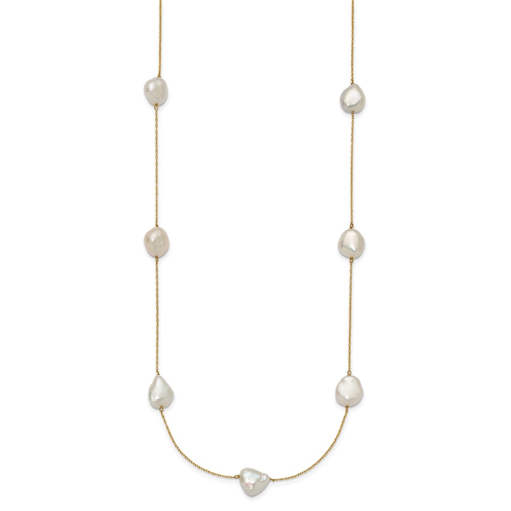 14k 10-11mm White Keshi Freshwater Cultured Pearl 7-Station 20 inch Necklace