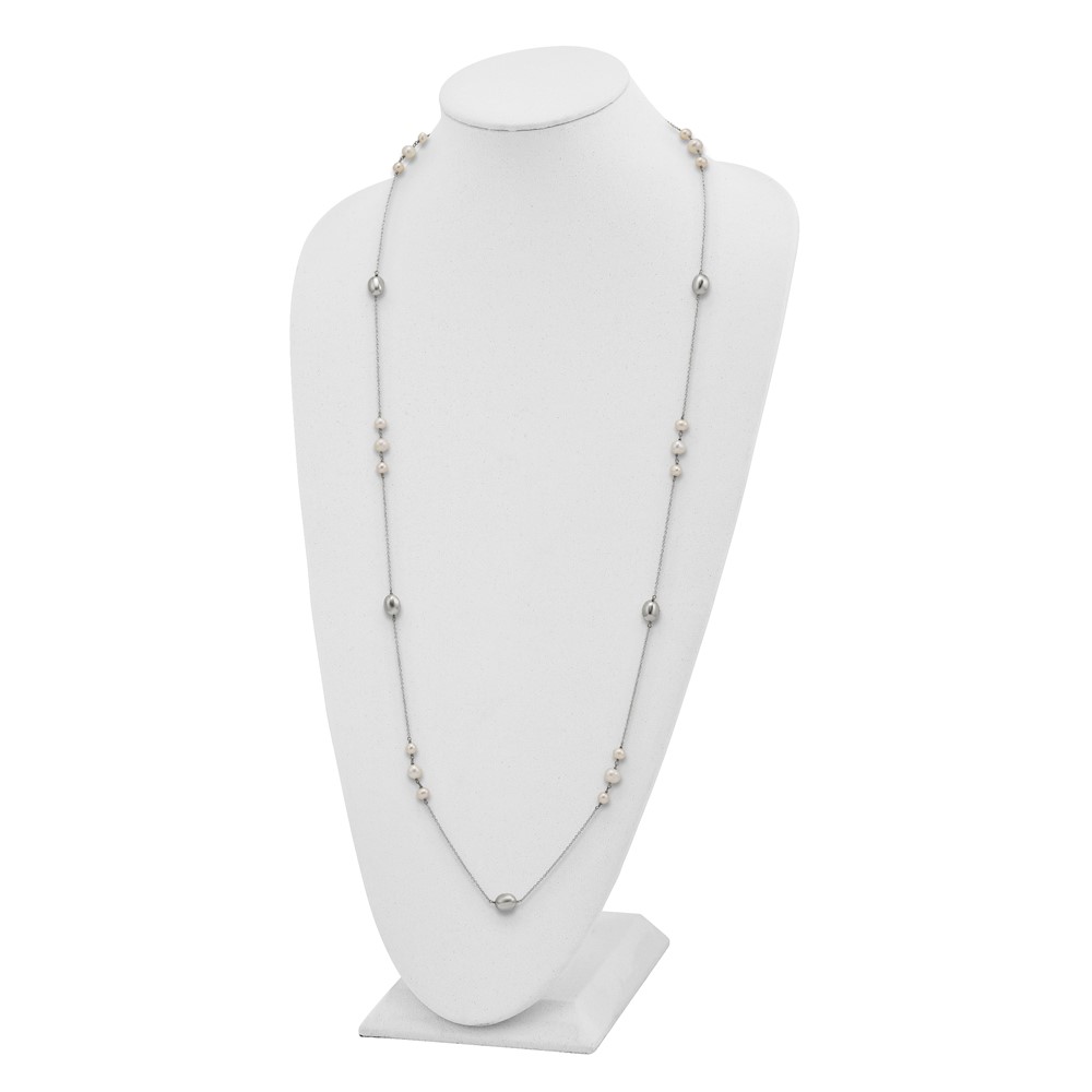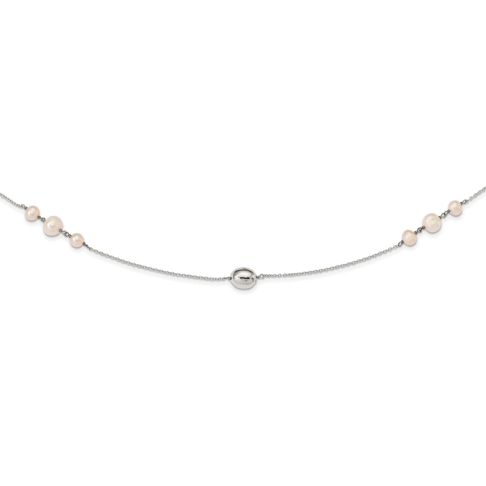 Sterling Silver Polished Bead & Freshwater Cultured Pearl Necklace