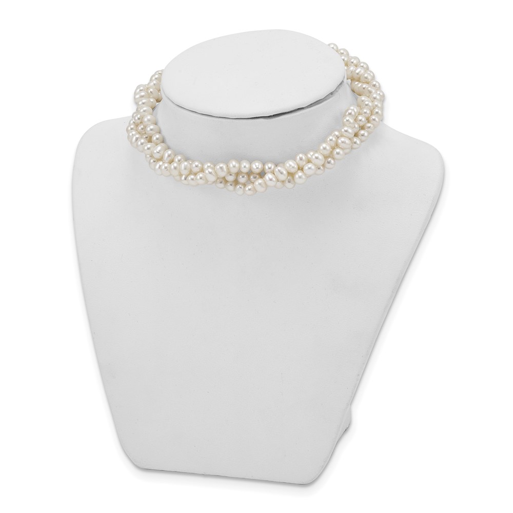 Sterling Silver Rhodium-plated 5-6mm White Semi-Round Freshwater Cultured Pearl 14 inch with 1.5 inch Choker