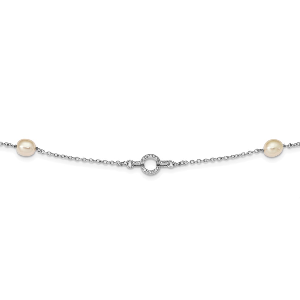 Sterling Silver Rhod-plat 7-8mm 4 FWC Pearl Stations CZ Necklace