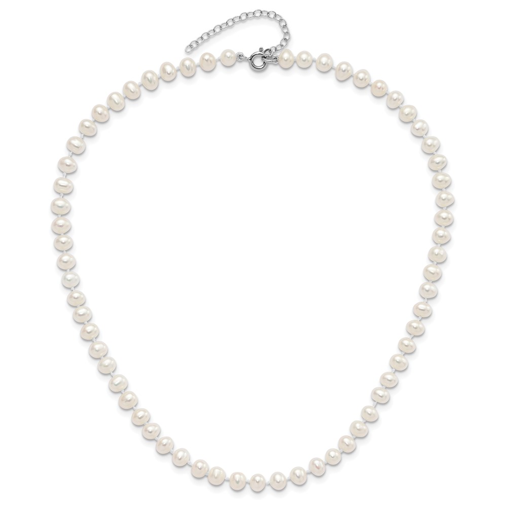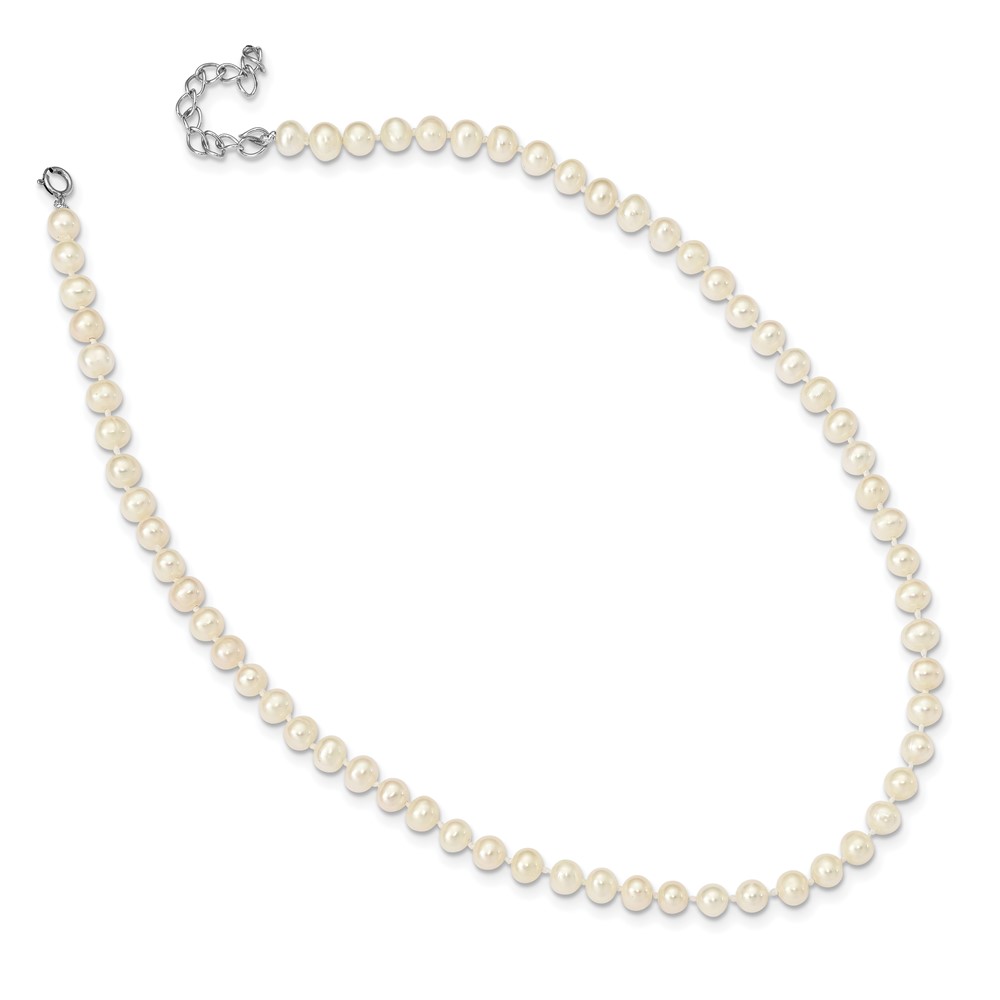 Sterling Silver Madi K Rhodium-plated 5-6mm White Semi-Round Freshwater Cultured Pearl 14 inch with 2 inch Extension Children's Necklace