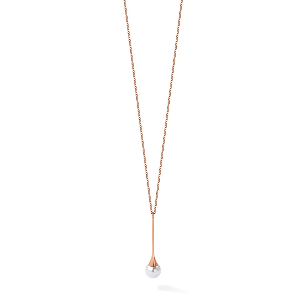Chisel Stainless Steel Polished Rose IP-plated Imitation Pearl Pendant on a 15.75 inch with a 1 inch Extension Necklace