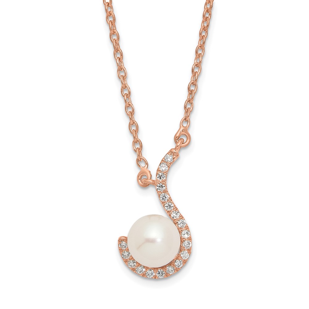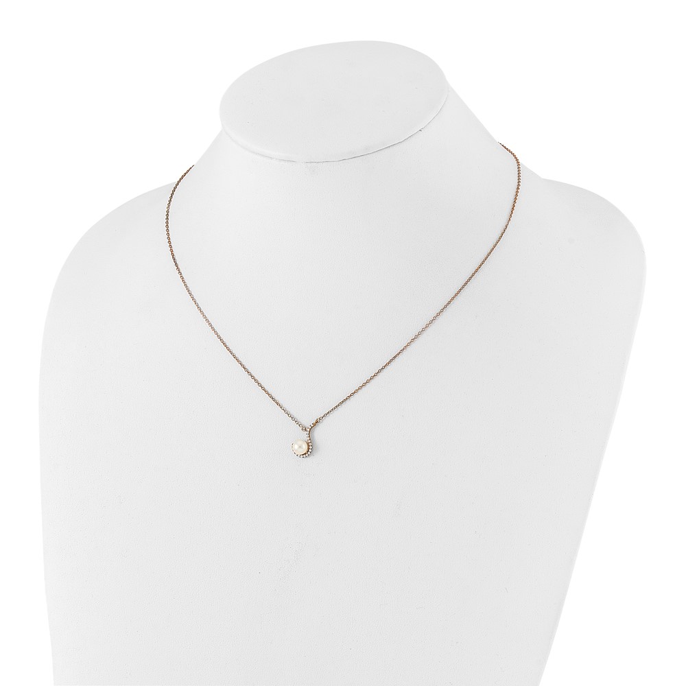 RG Sterling Silver Pearl & CZ Pendant Necklace