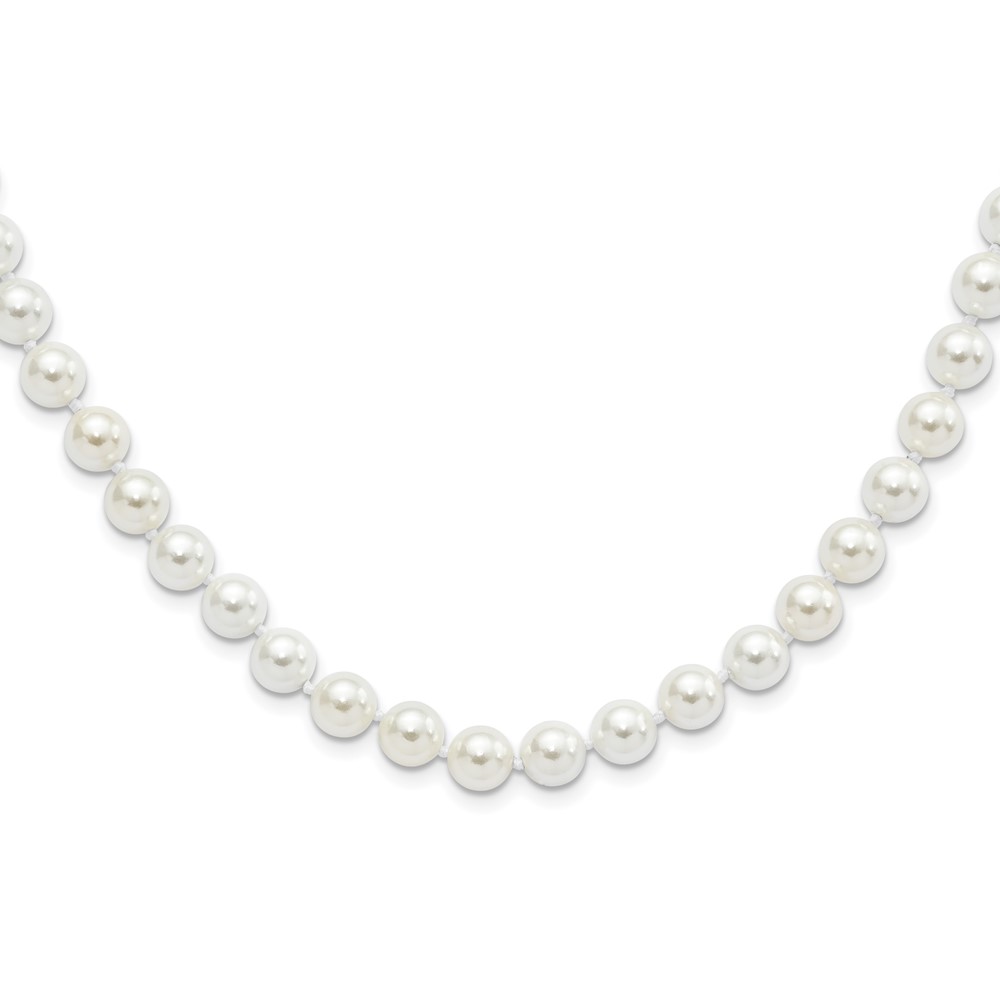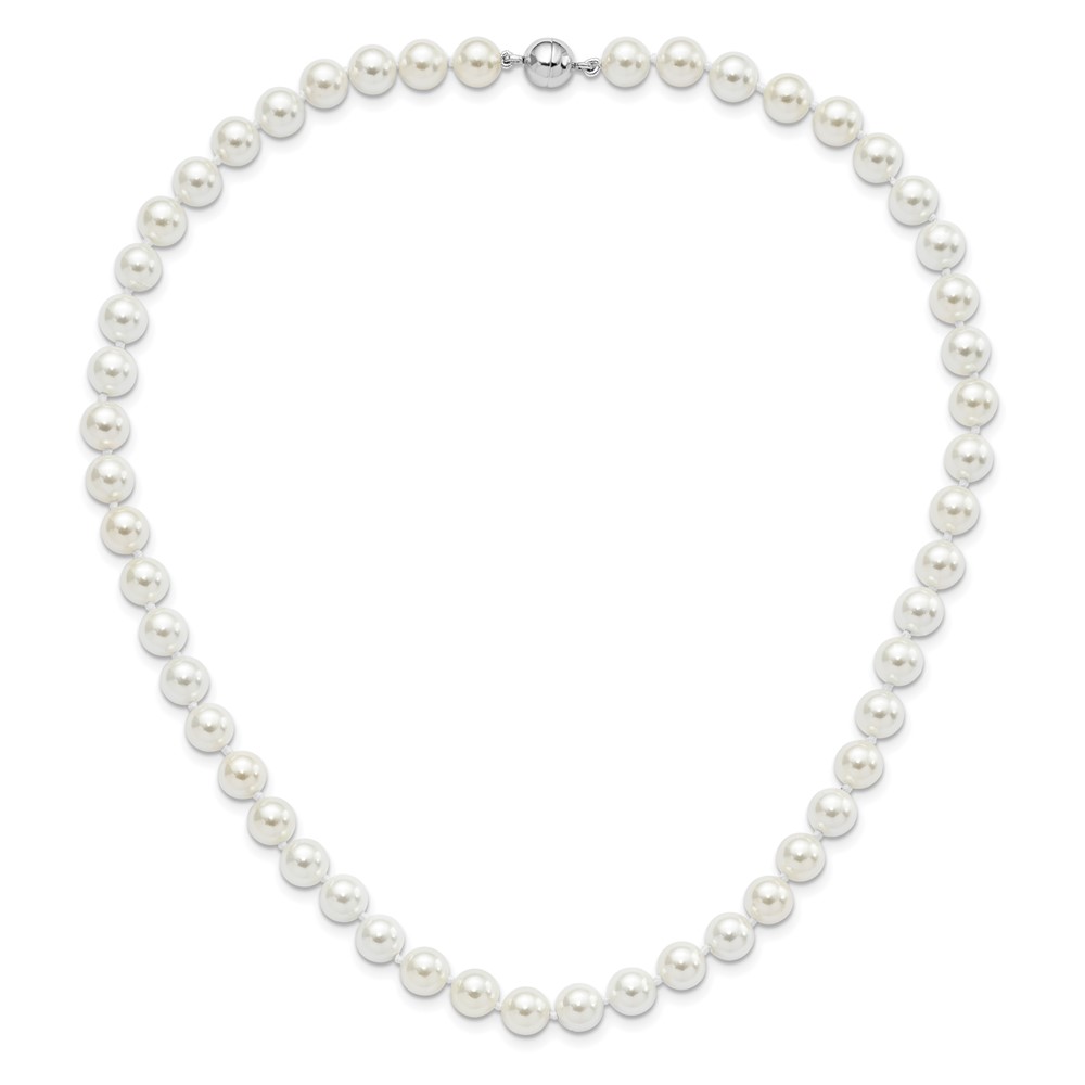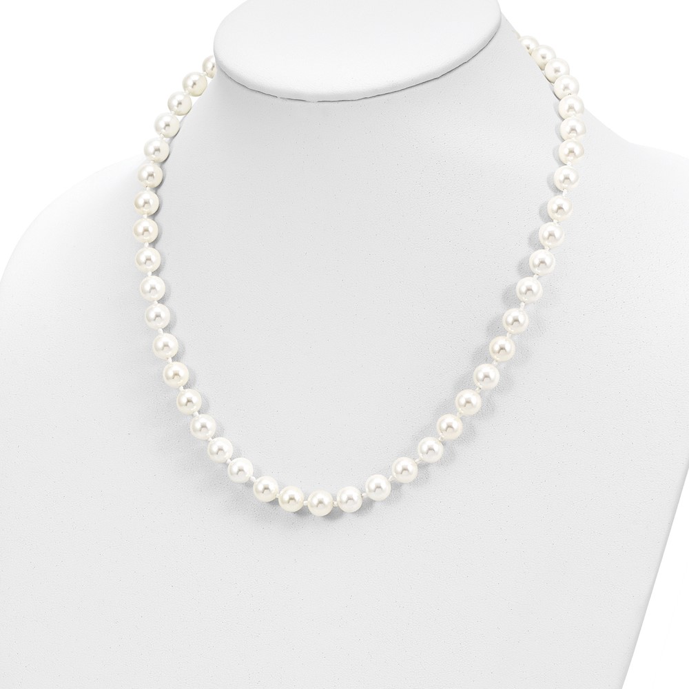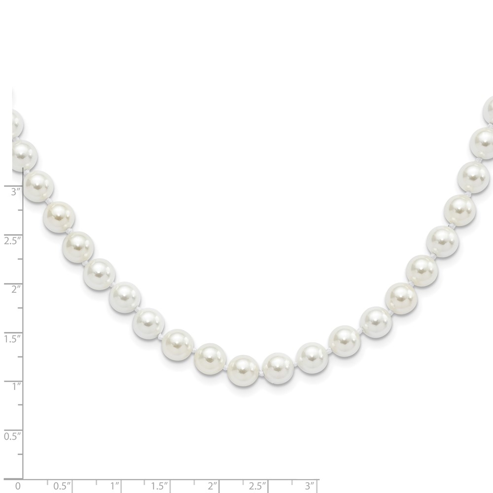 Majestic Sterling Silver Rhodium-plated 8-9mm White Imitation Shell Pearl Hand-knotted Necklace