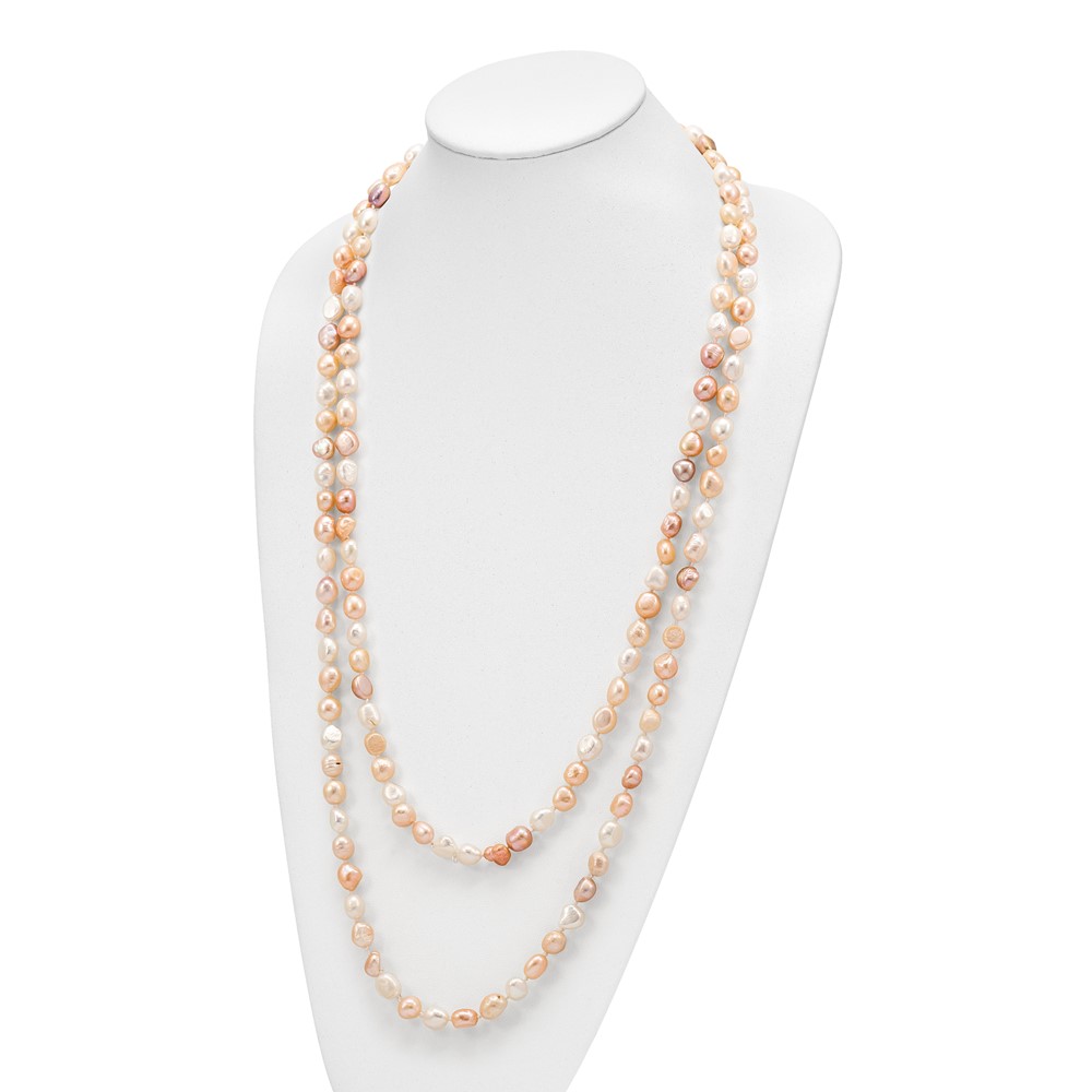"9-11mm White, Pink and Purple Baroque Freshwater Cultured Pearl Endless 64 inch Necklace"