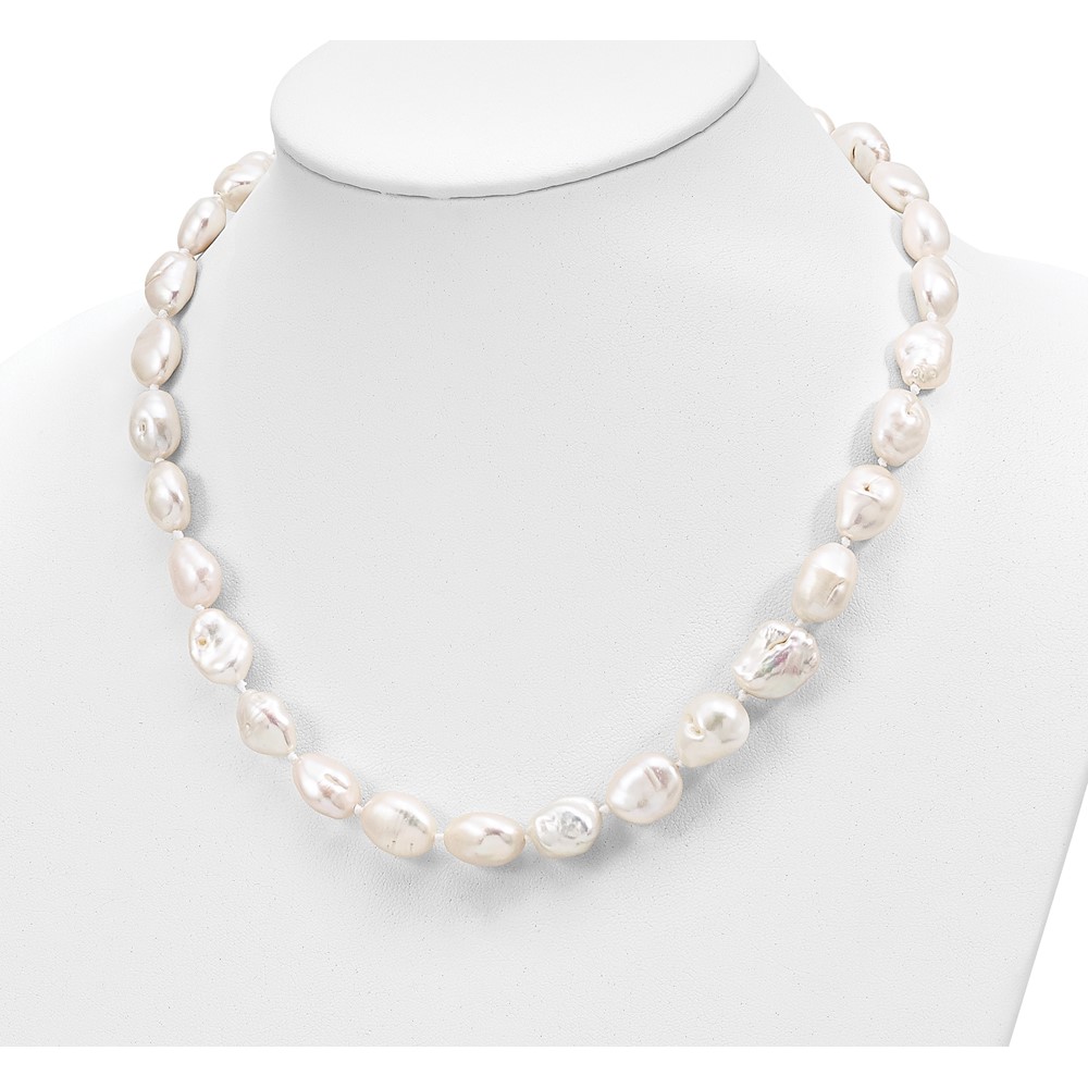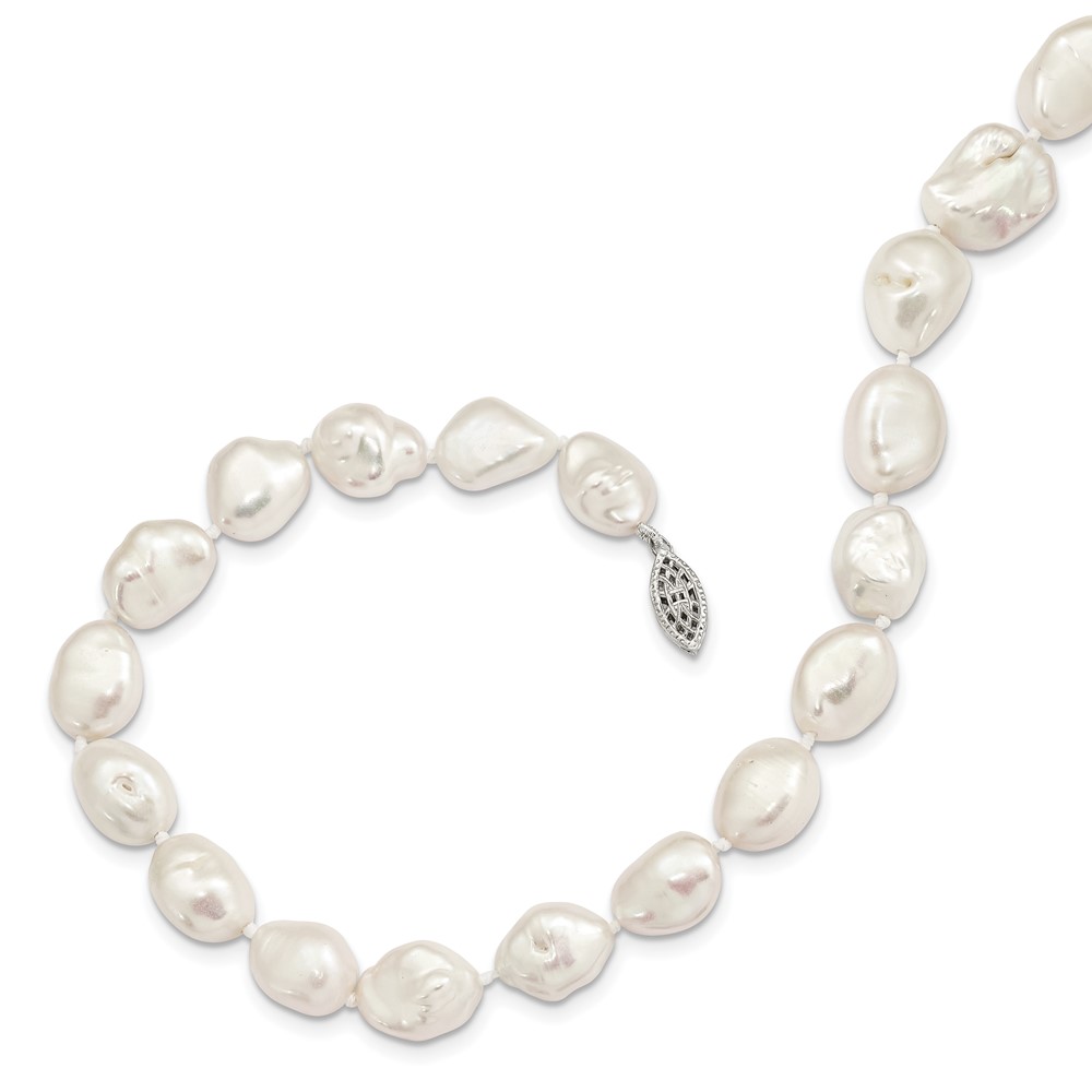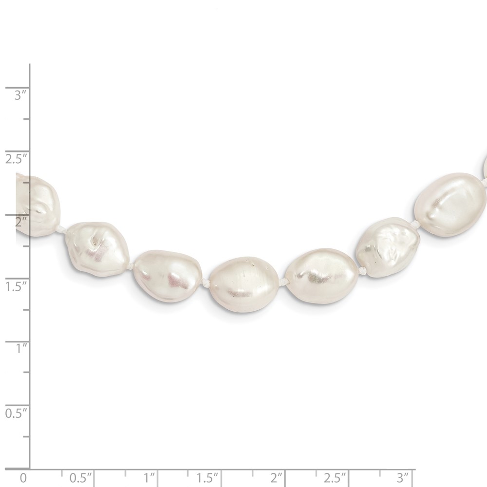 Sterling Silver Rhodium-plated 11x14mm White Keshi Freshwater Cultured Pearl 18 inch Necklace