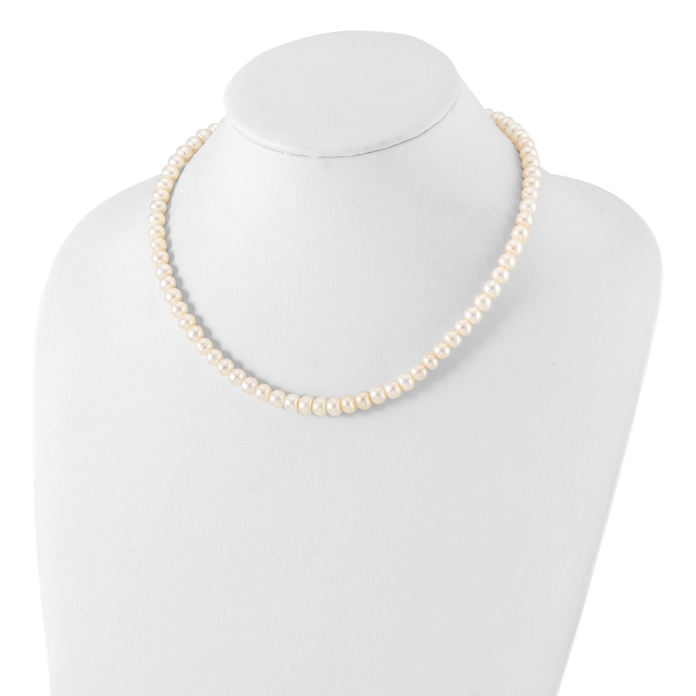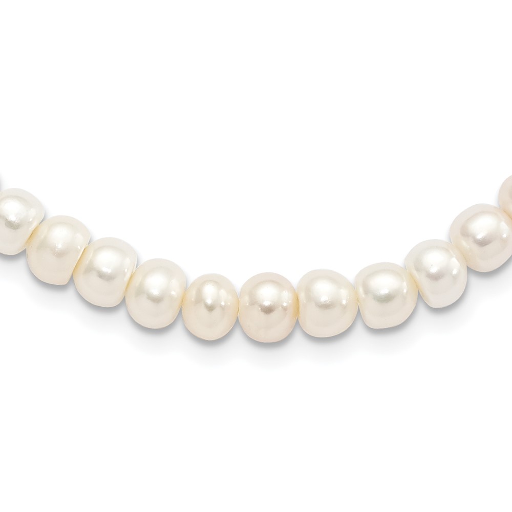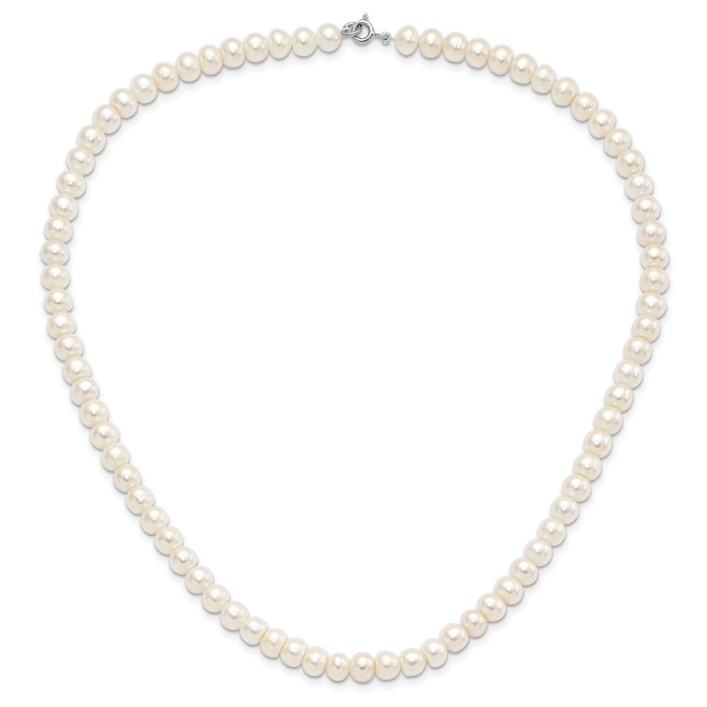 Sterling Silver Rhodium-plated 7-8mm White Near-Round Freshwater Cultured Pearl 18 inch Necklace