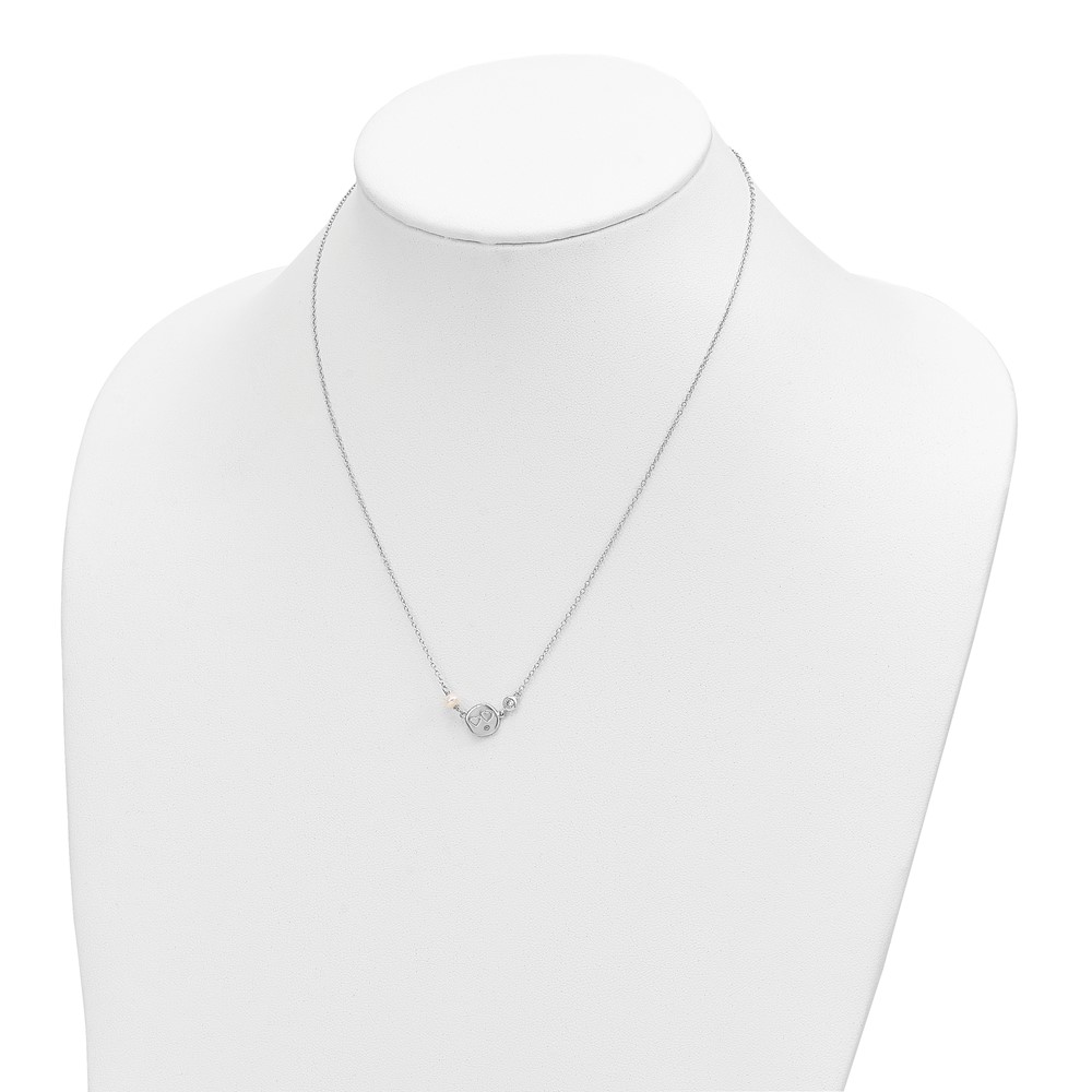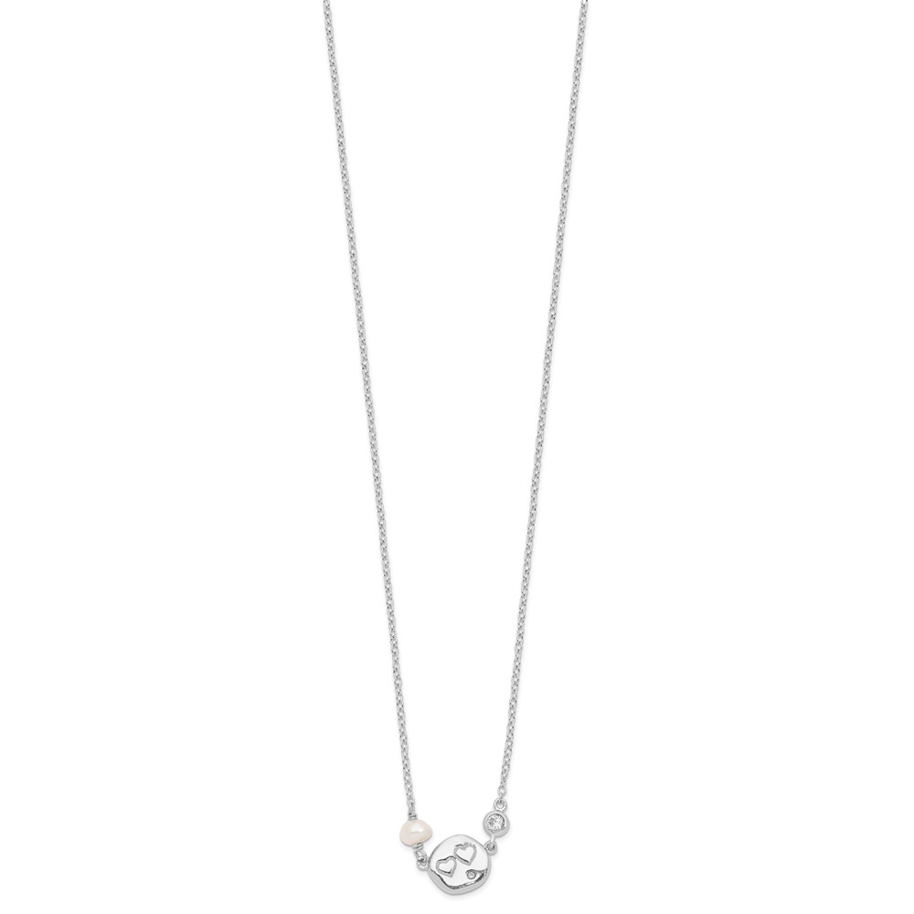 Sterling Silver Rhodium-plated CZ FW Cultured Pearl w/Hearts Necklace