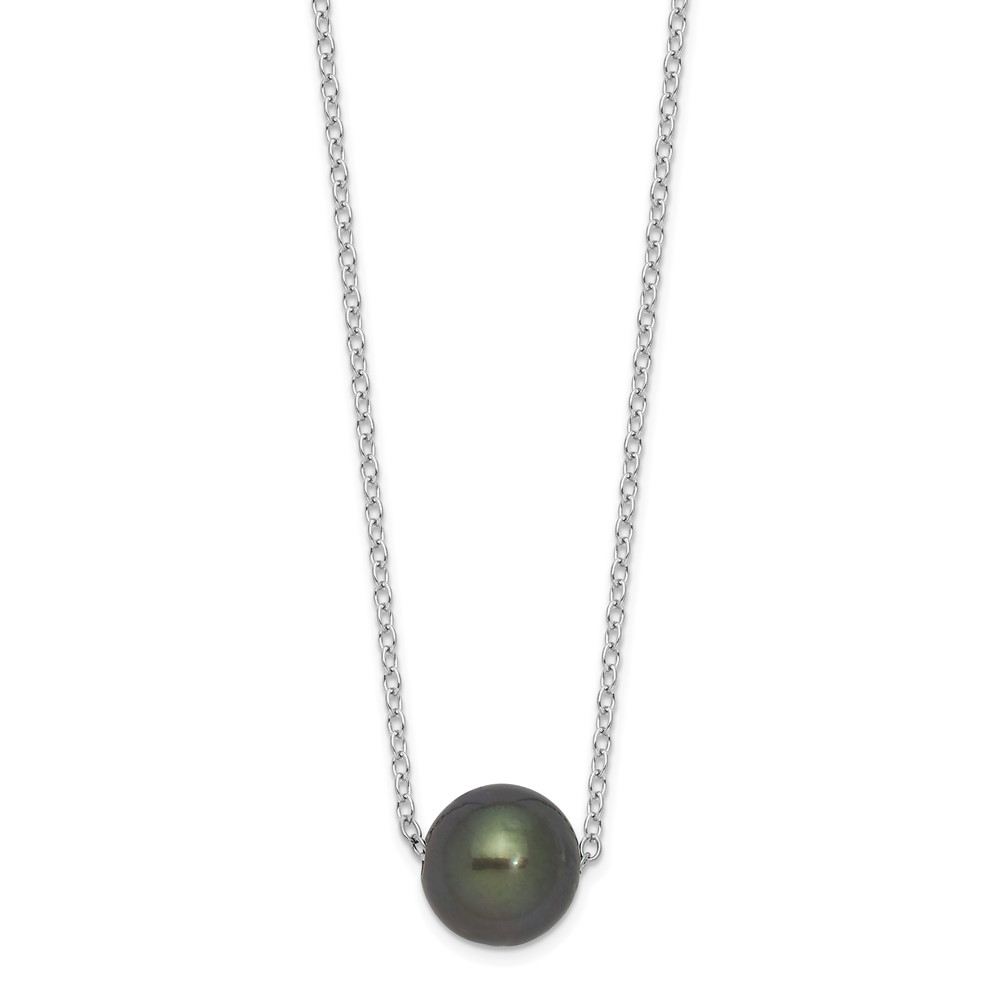 Sterling Silver Rhodium-plated 8-9mm Black Semi-Round Tahitian Saltwater Cultured Pearl 17 inch Necklace