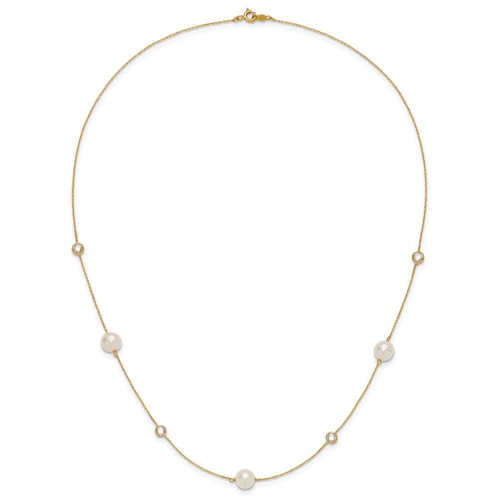 10K Polished CZ and 7-8mm FWC Pearl 7 Station Necklace