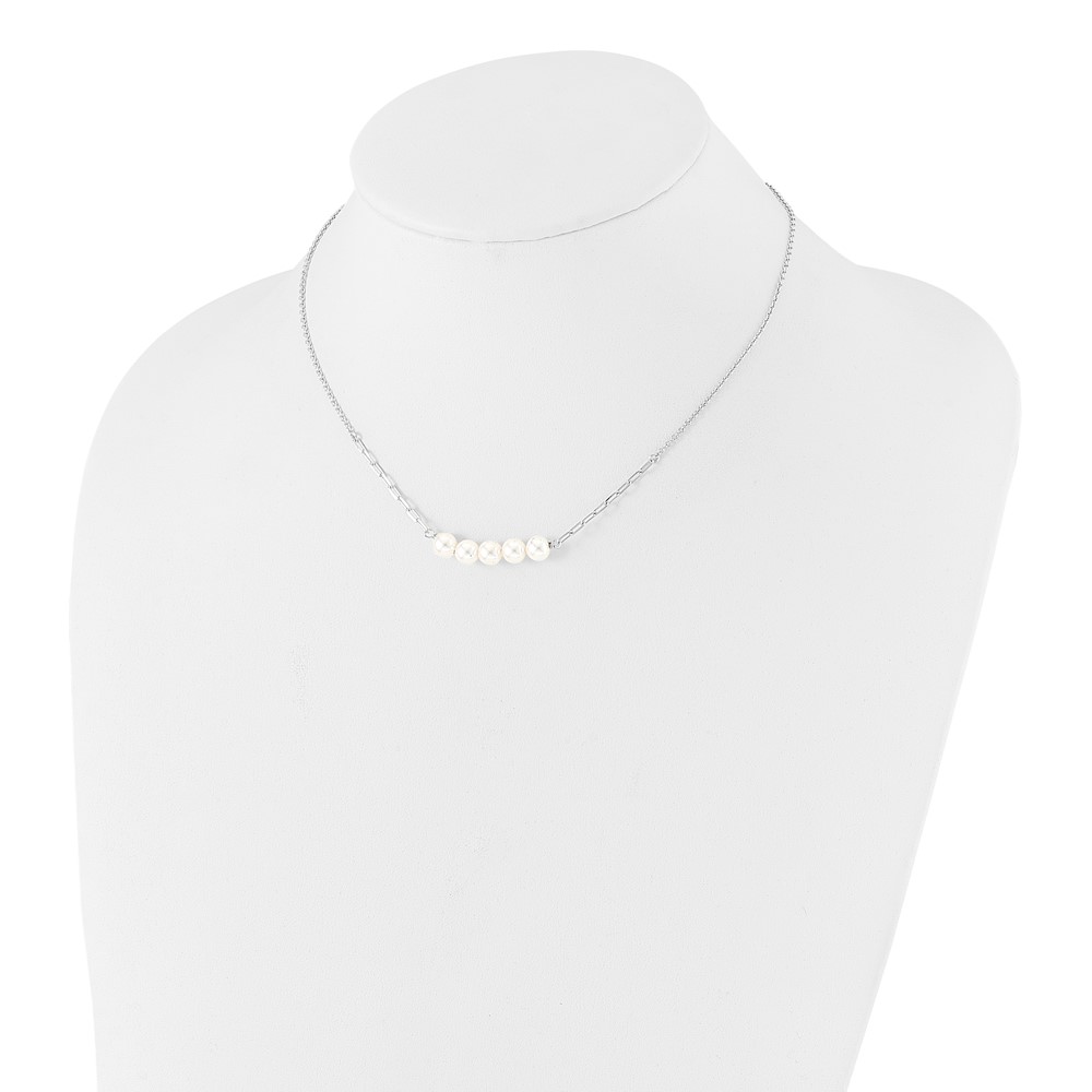 Sterling Silver Rhodium-plated Glass Pearl 16in w/2 in ext Necklace