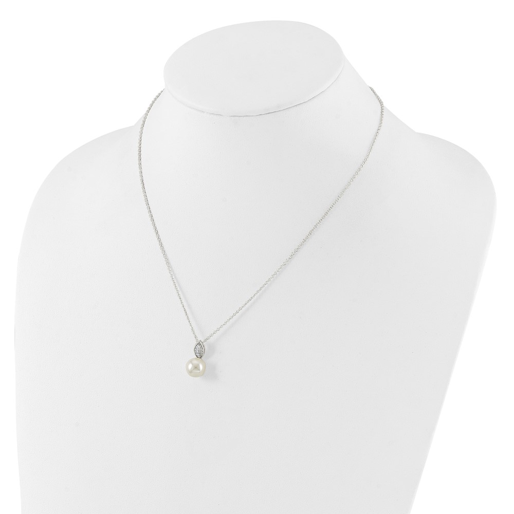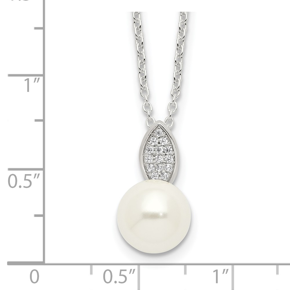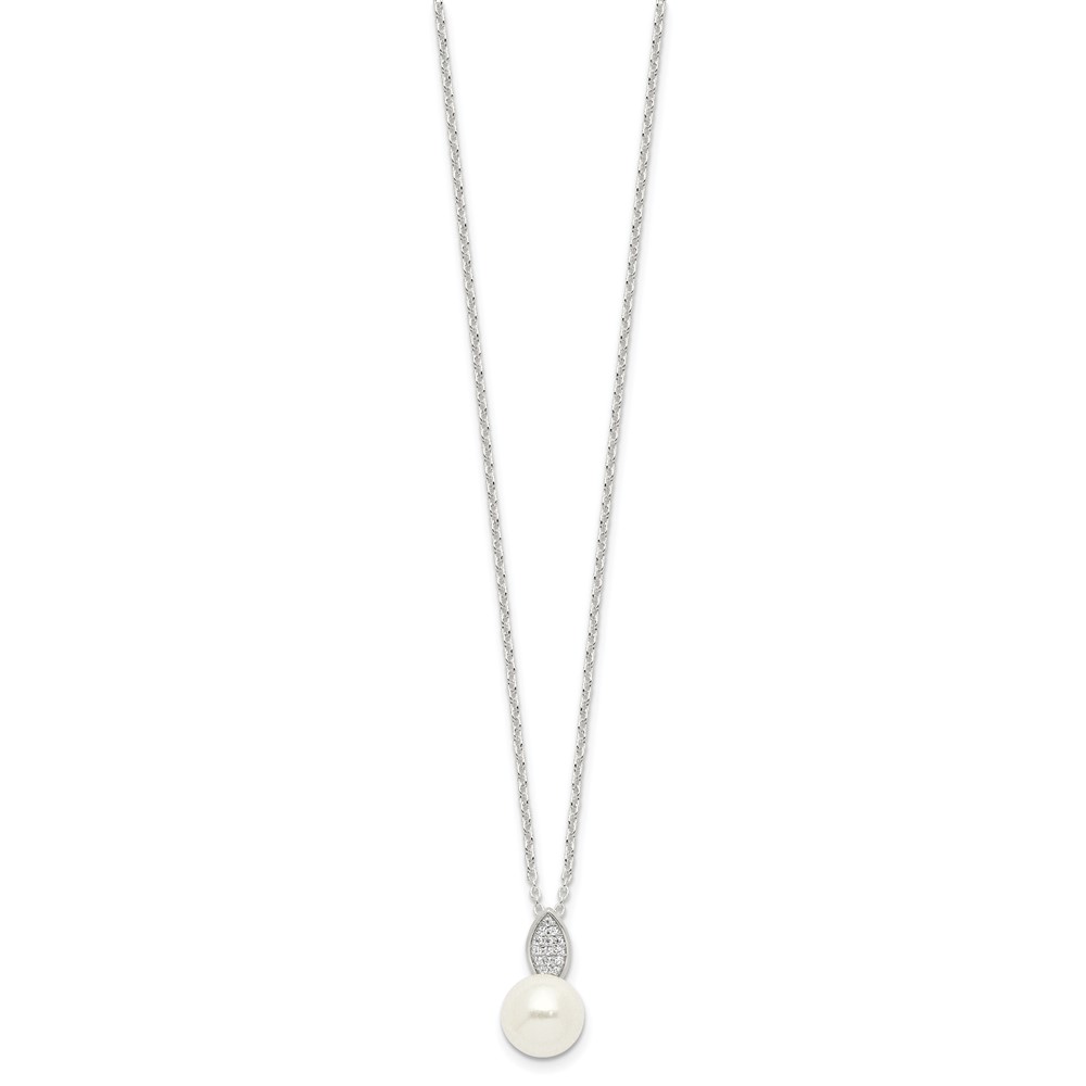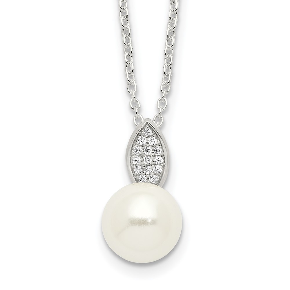 Sterling Silver Polished CZ and Simulated Pearl Necklace