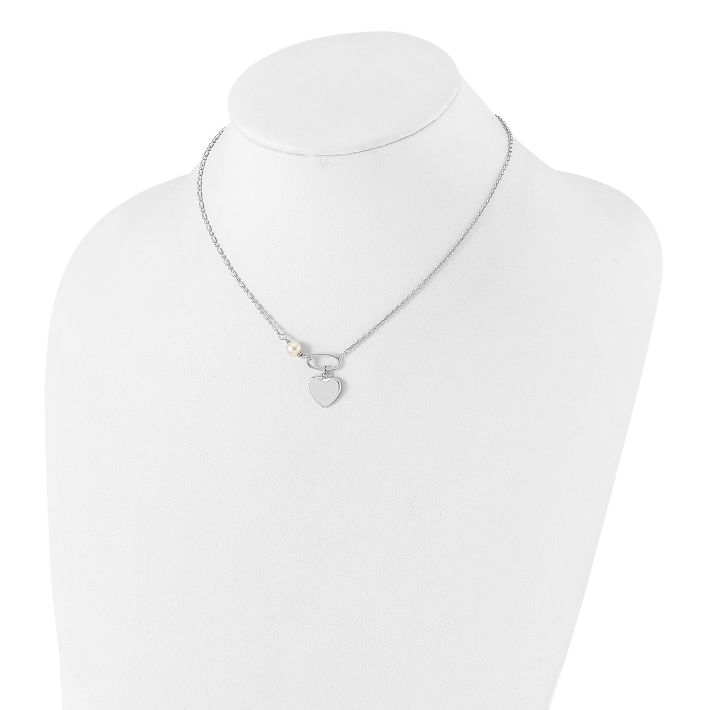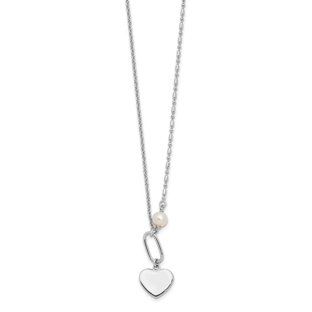 Sterling Silver Rhodium-plated Glass Pearl/Heart 16in w/2 in ext Necklace