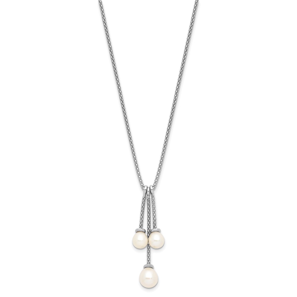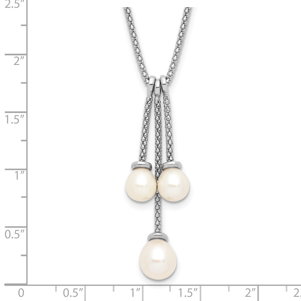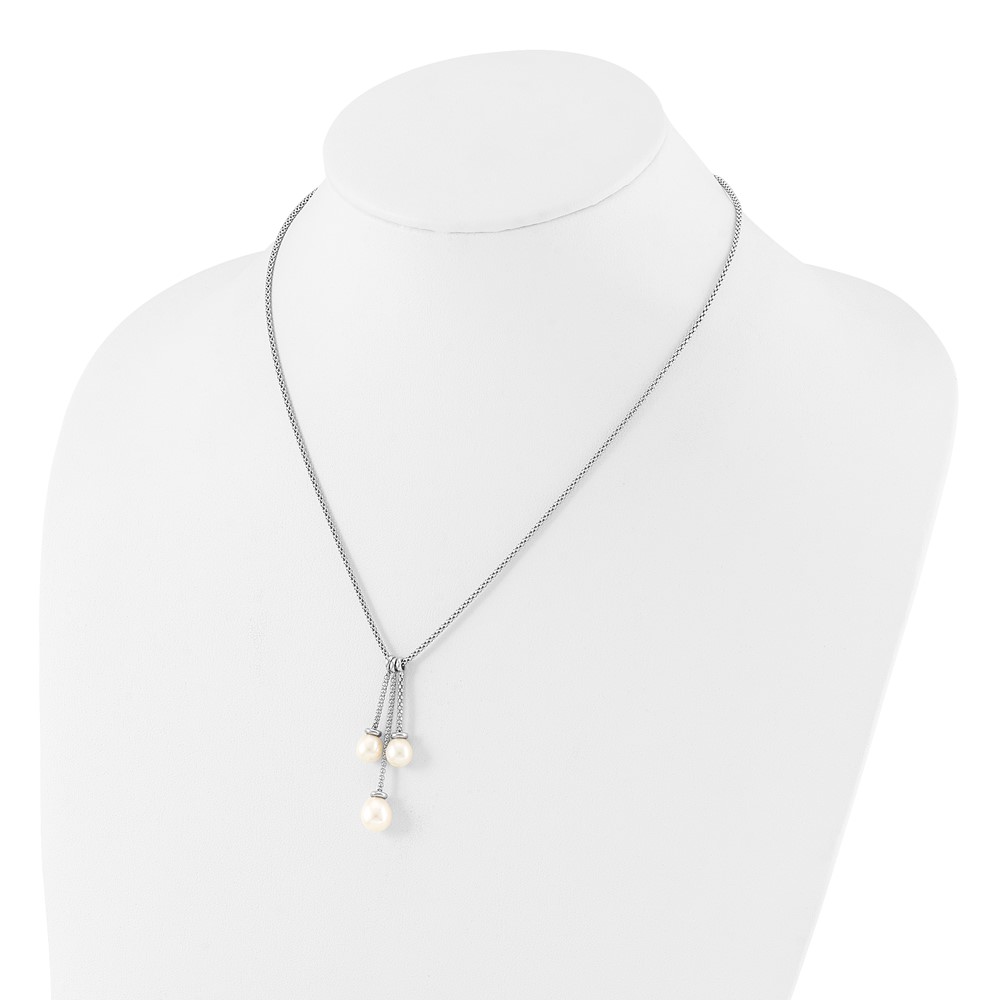 Sterling Silver RH-plated 6-8mm FWC Pearl Movable Dangles Necklace