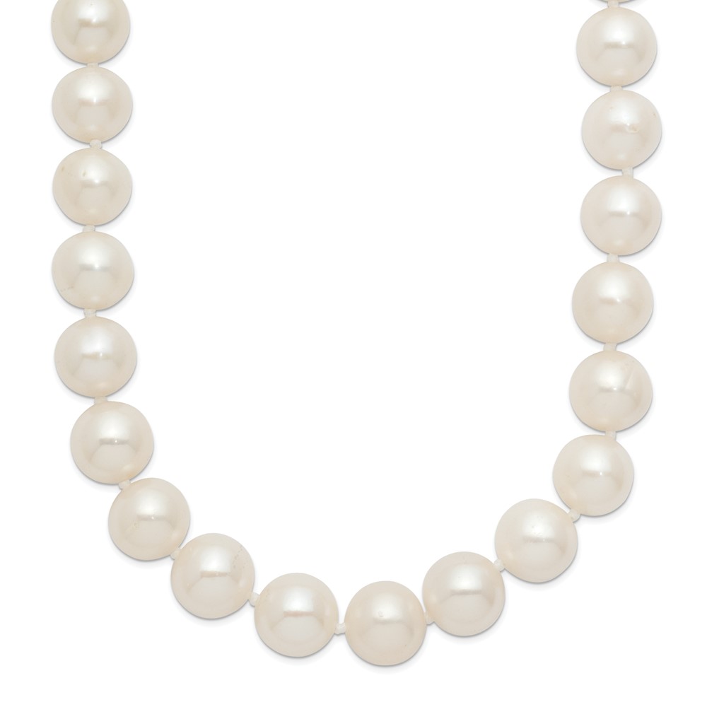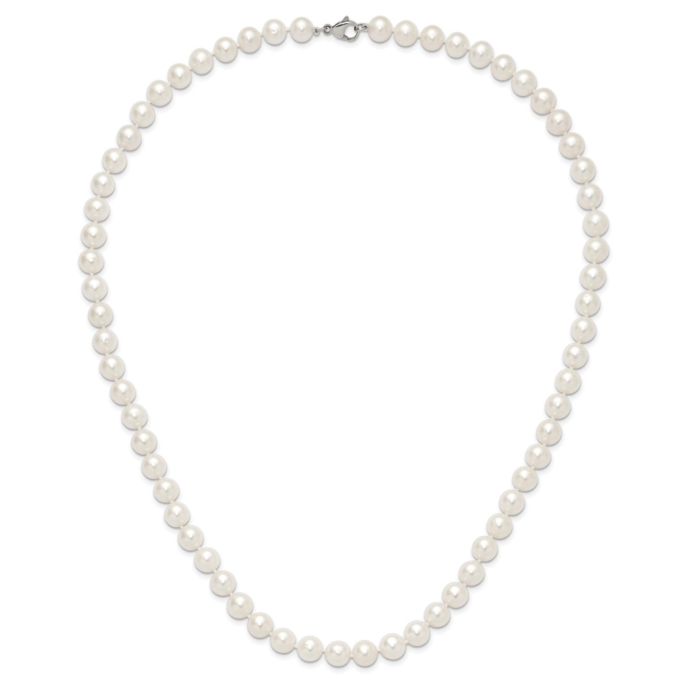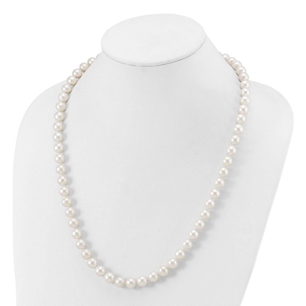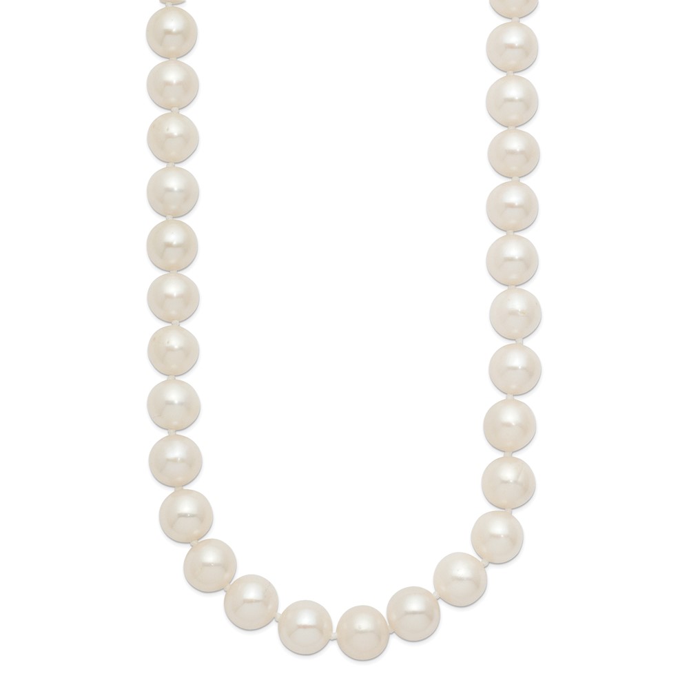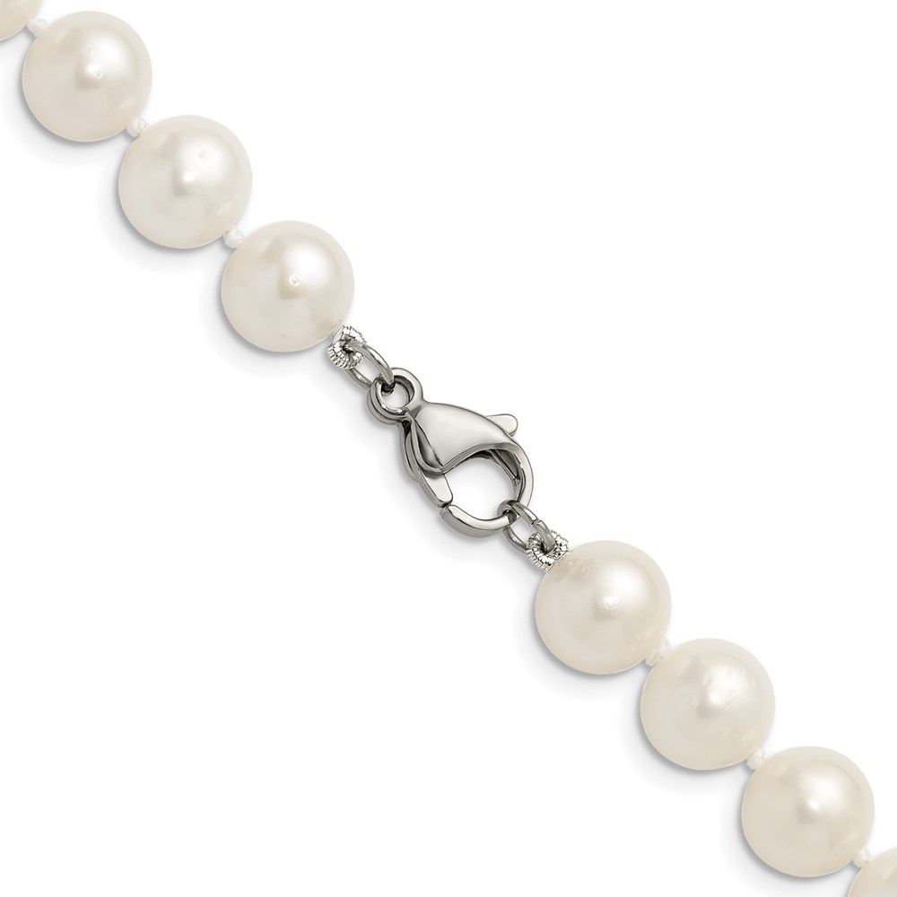 Chisel Stainless Steel Polished 9-10mm Hand Knotted White Round Freshwater Cultured Pearl 24 inch Necklace