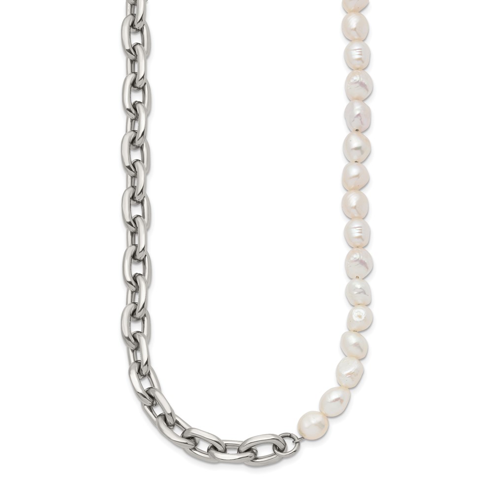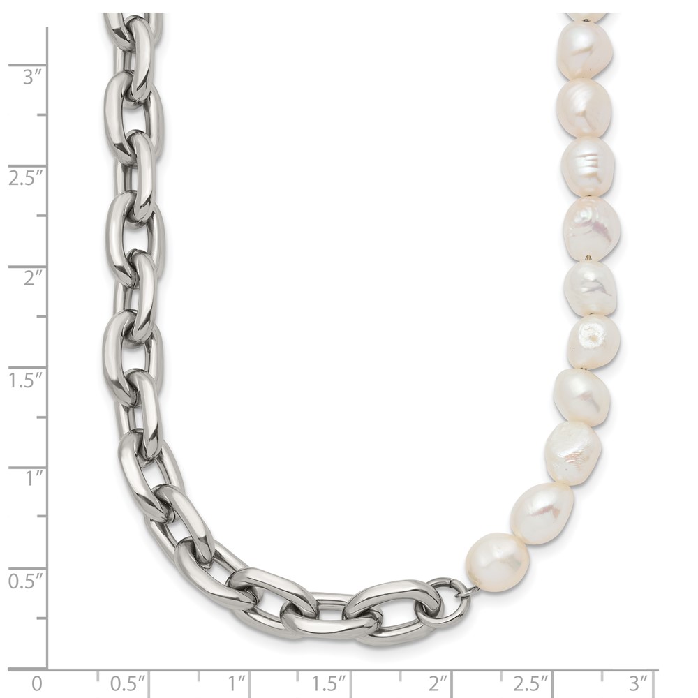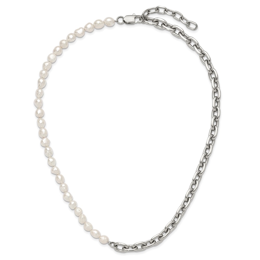 Chisel Stainless Steel Polished Open Link Half Baroque Pearl Beaded 20 inch Plus a 2 inch Extension Necklace