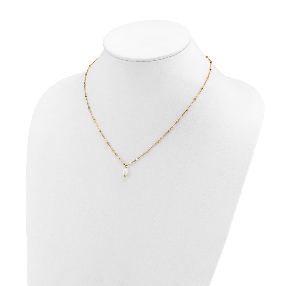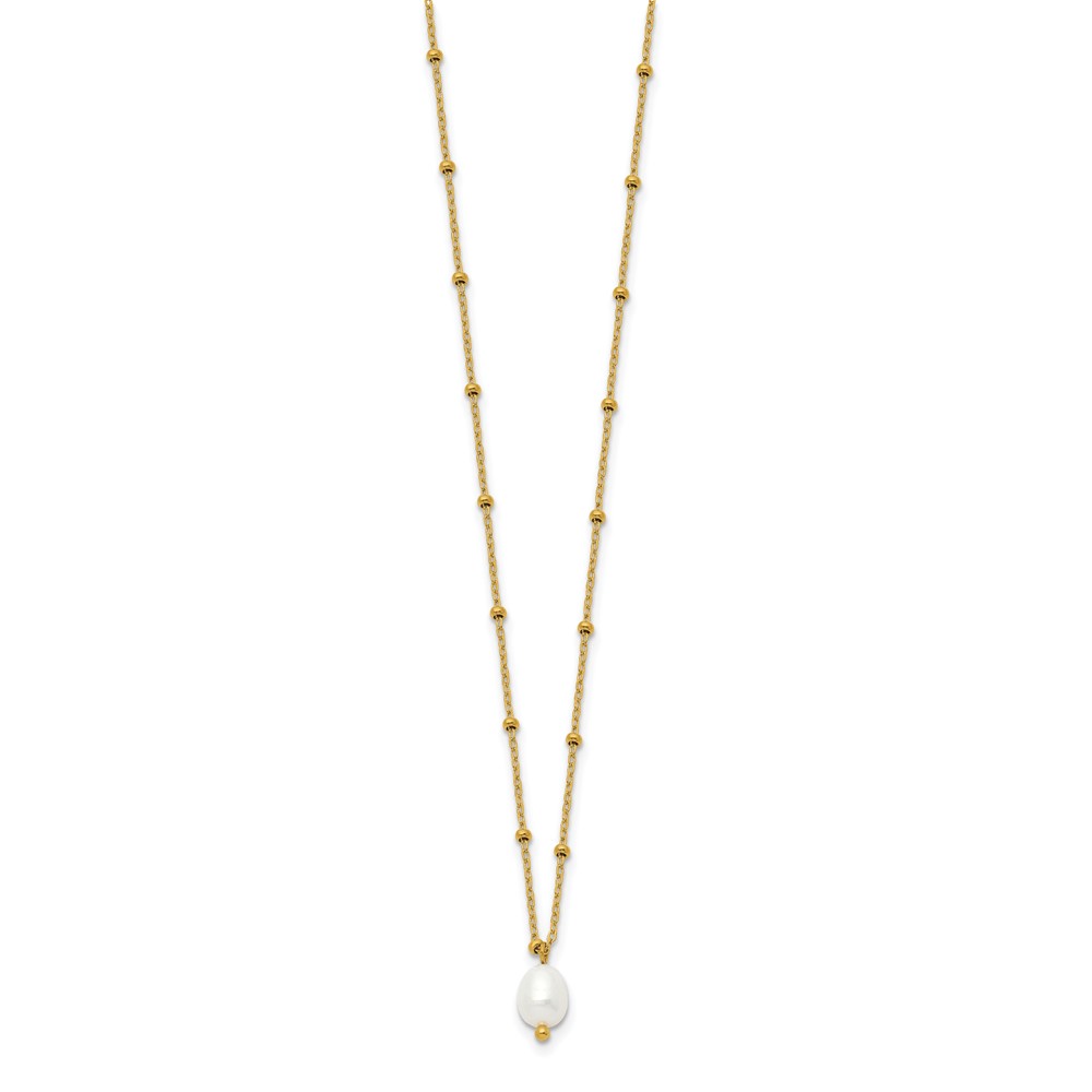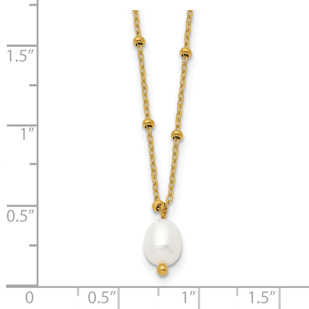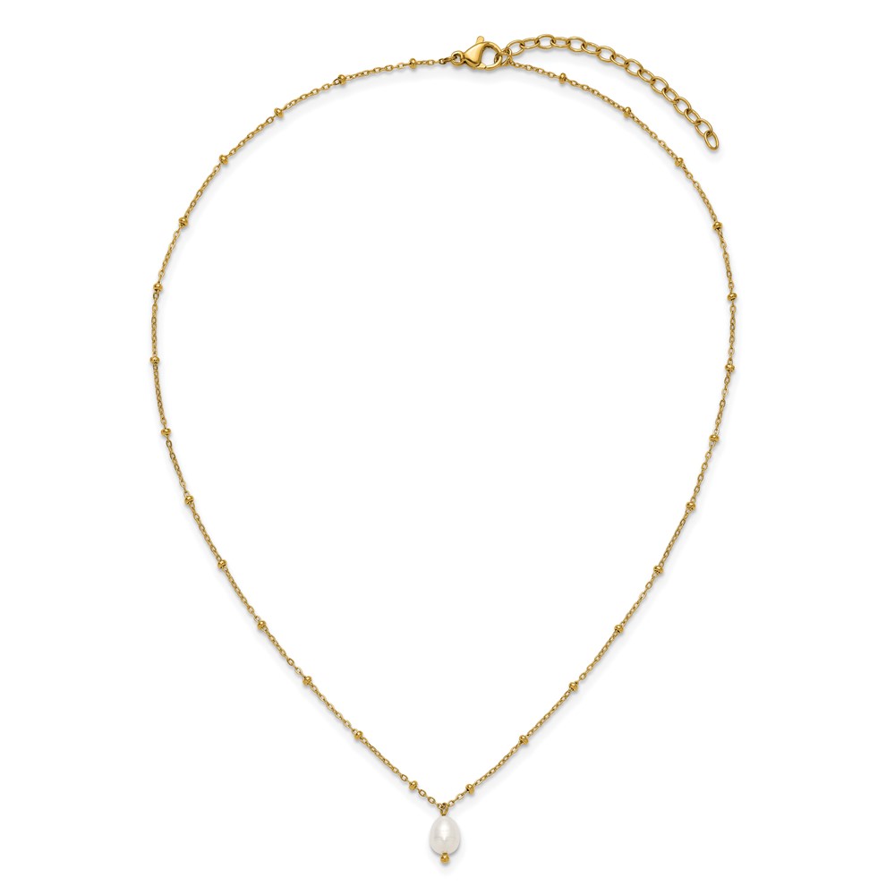 Chisel Stainless Steel Polished Yellow IP-plated Imitation Pearl on a Beaded 16 inch Plus 2 inch Extension Cable Chain Necklace