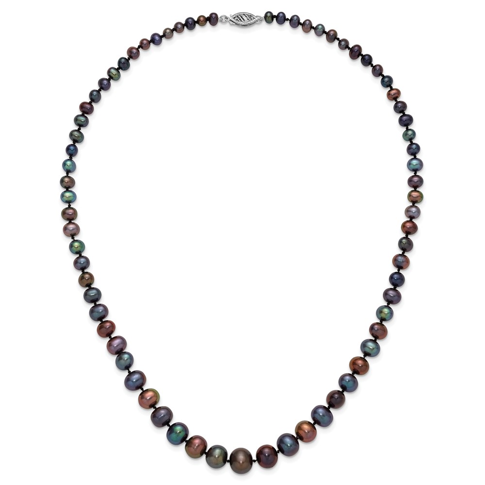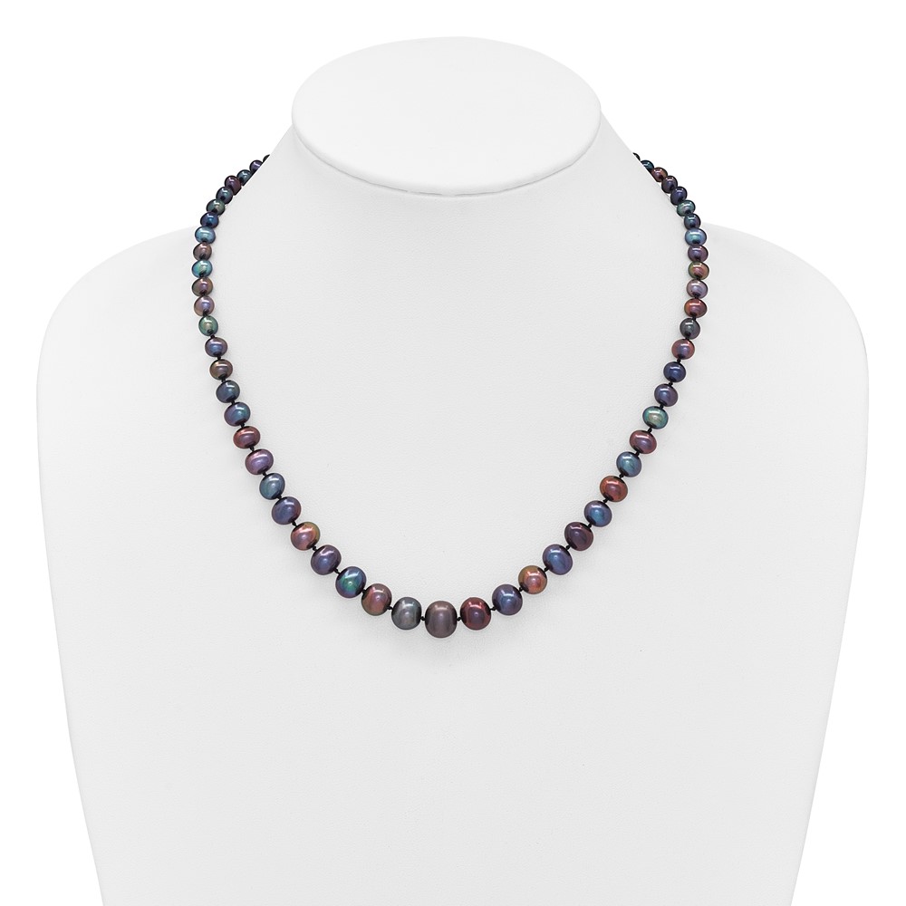 14k White Gold 4-10mm Graduated Black Near Round Freshwater Cultured Pearl 18 inch Necklace