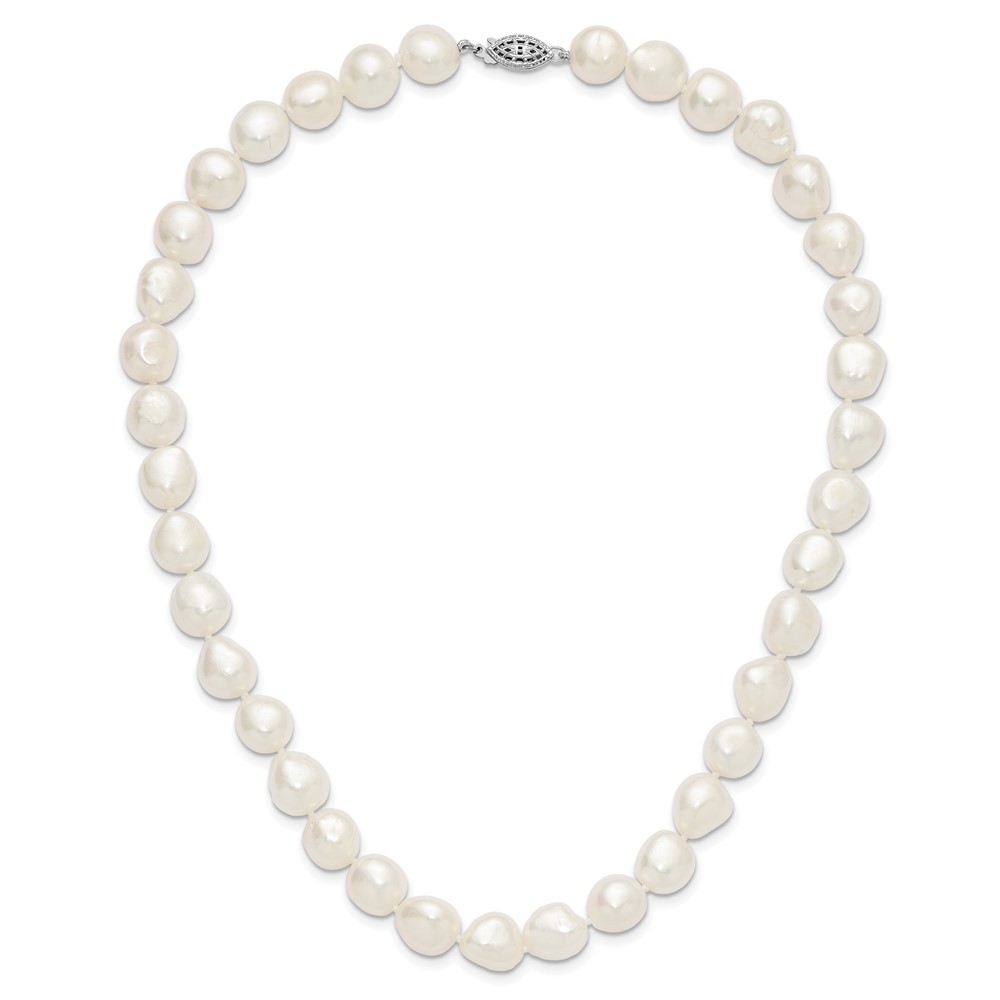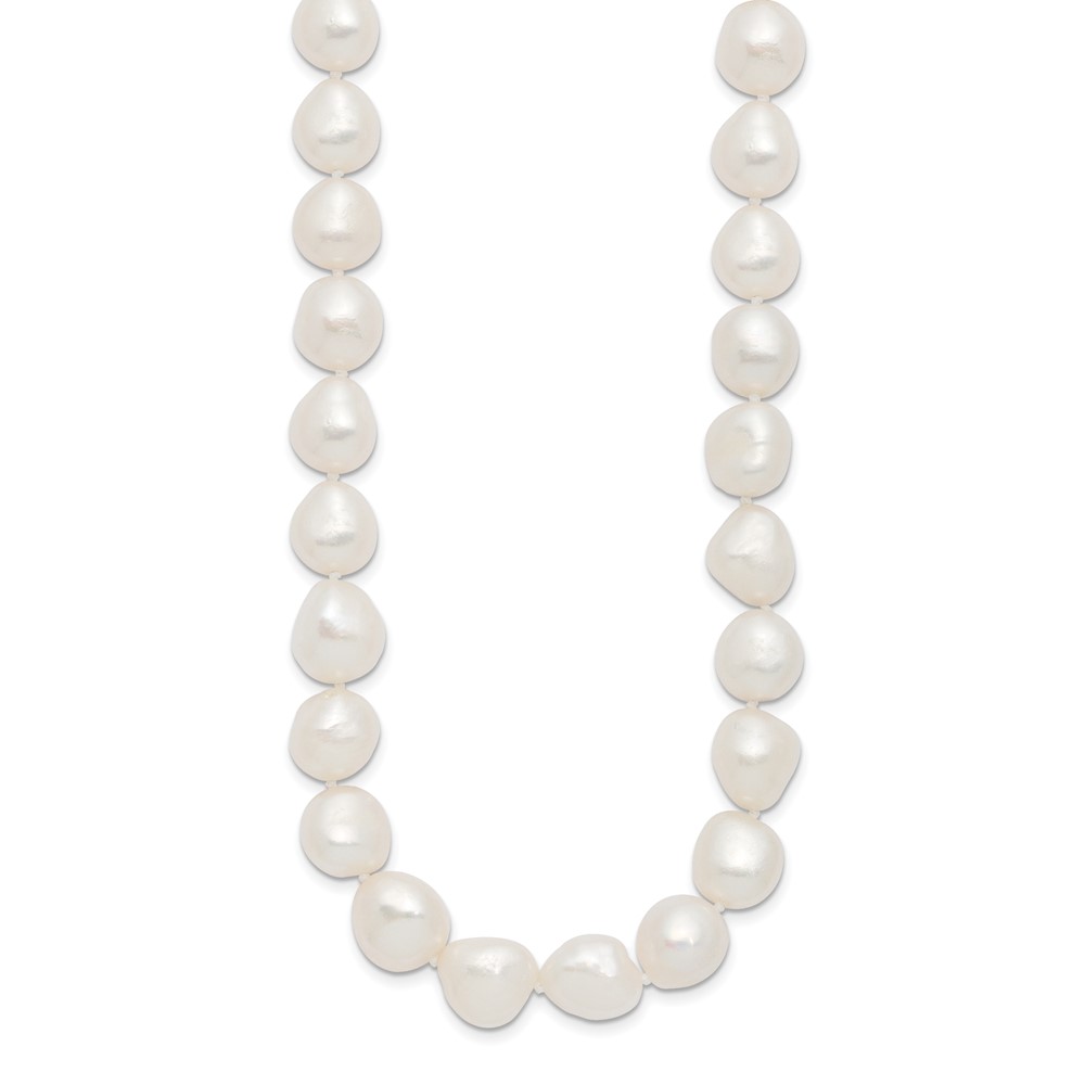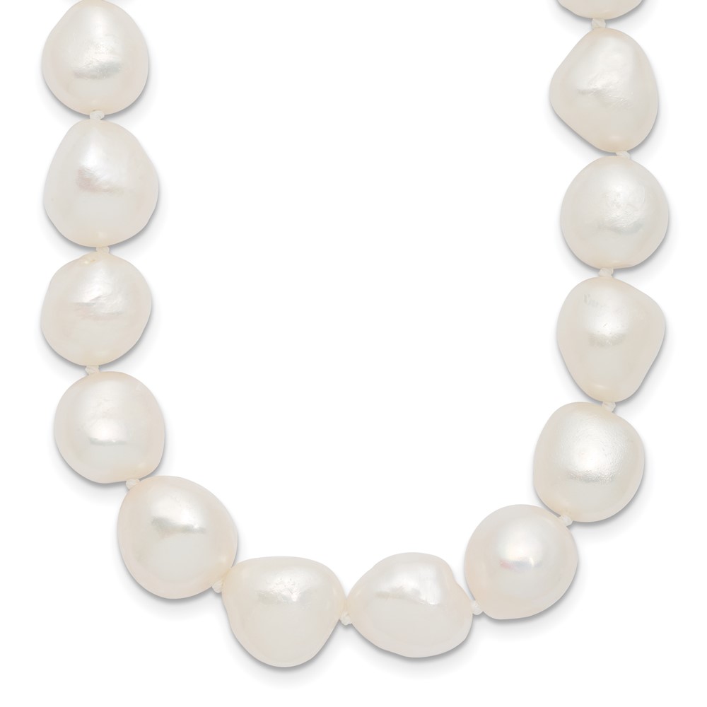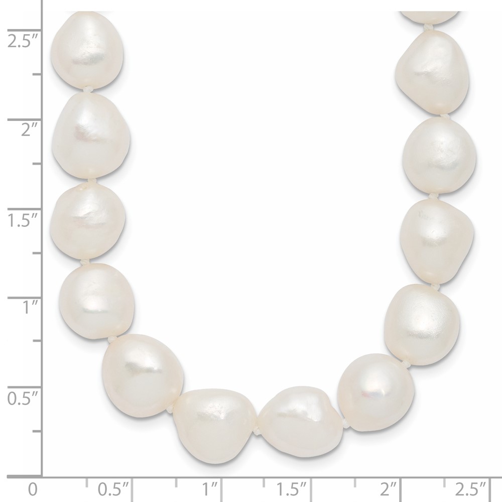 Sterling Silver Rhodium-plated 11-12mm White Baroque Freshwater Cultured Pearl 20 inch Necklace