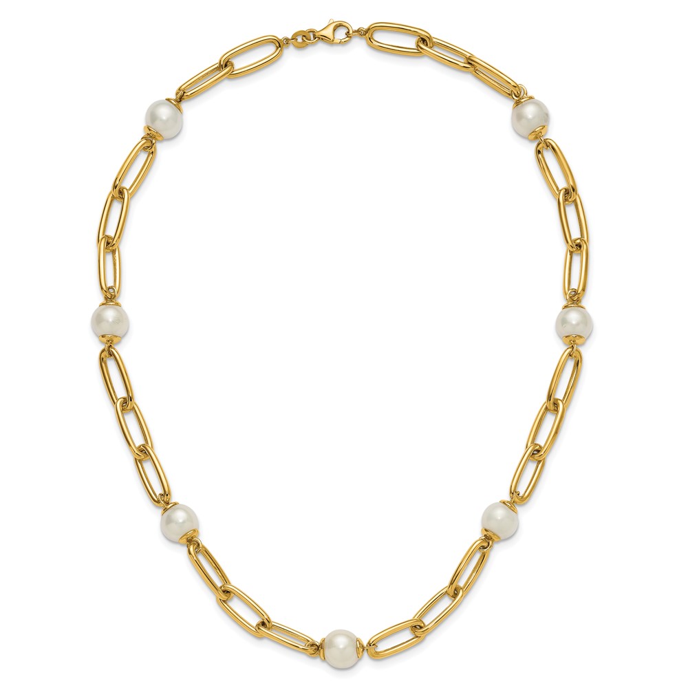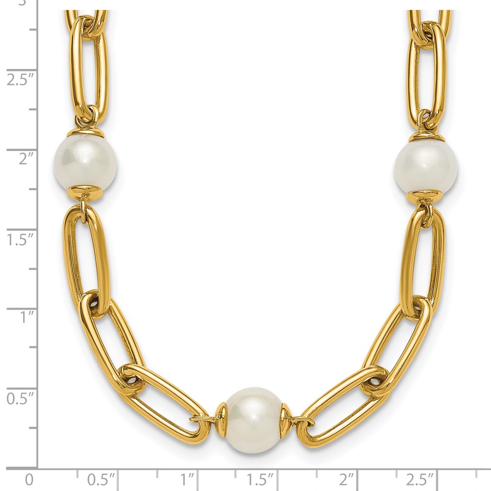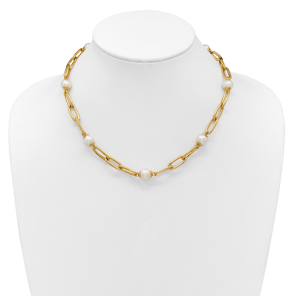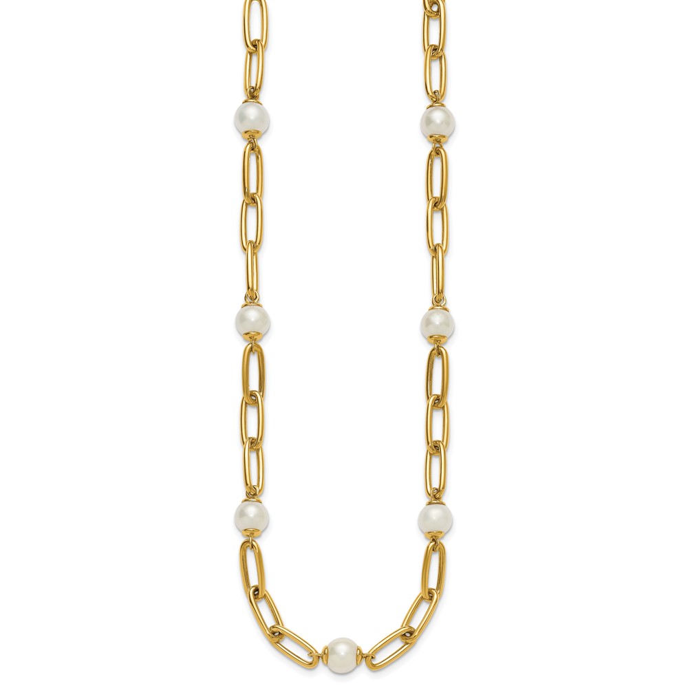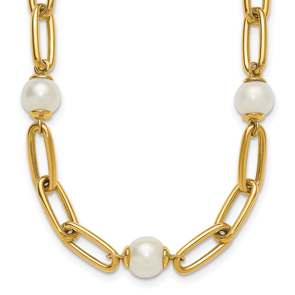 Herco 14K Polished Freshwater Cultured Pearl and Paperclip Link 18 Inch Necklace