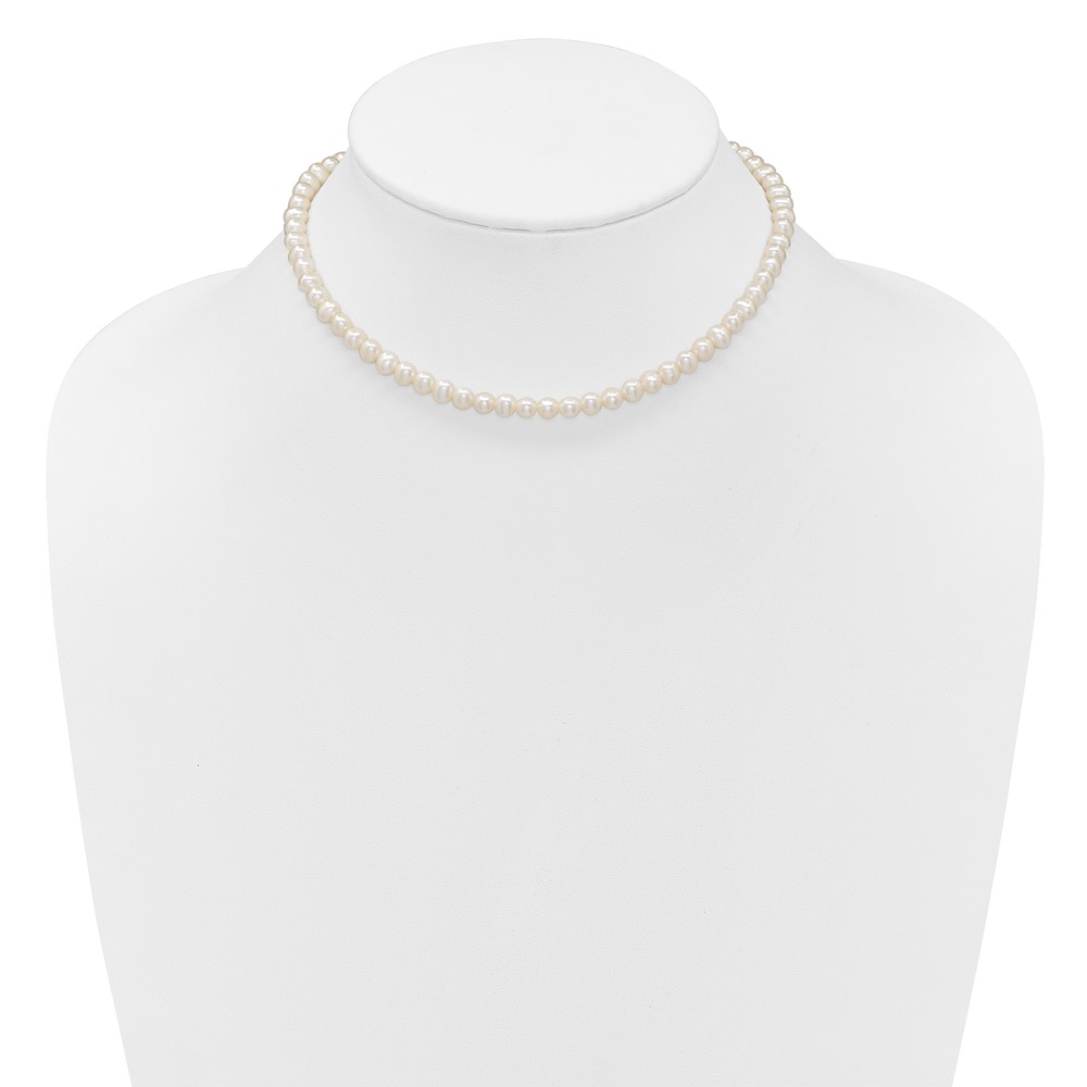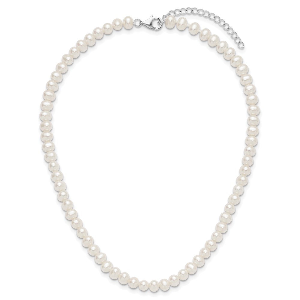 Sterling Silver Rhodium-plated 6-7mm Semi-Round White Freshwater Cultured Pearl 14 inch with 2 inch Extender Choker