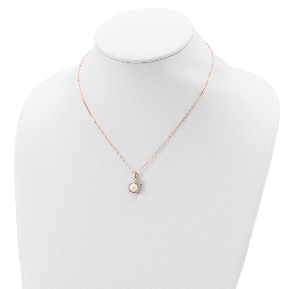 Sterling Silver FWC Pearl in CZ Heart Necklace