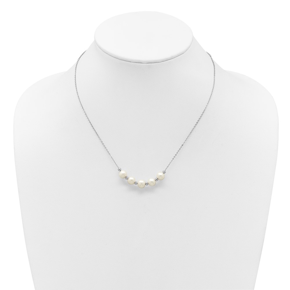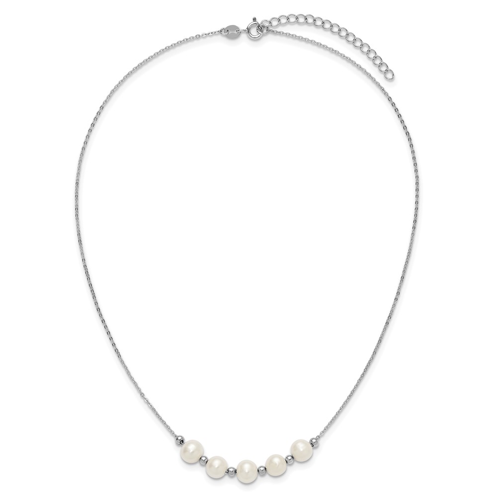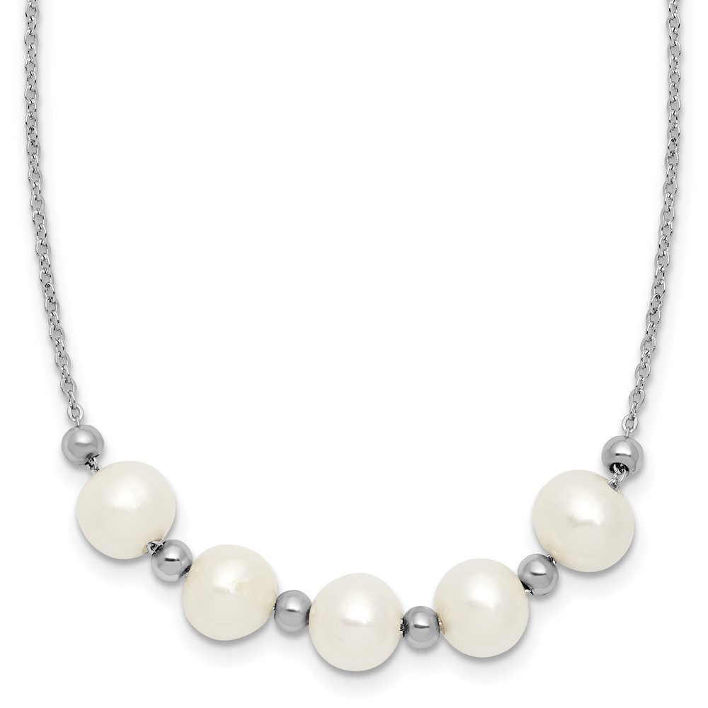 Sterling Silver Rhodium-plated 7-8mm Semi-Round White Freshwater Cultured Pearl and Beads 16 inch with 2 inch Extender Necklace
