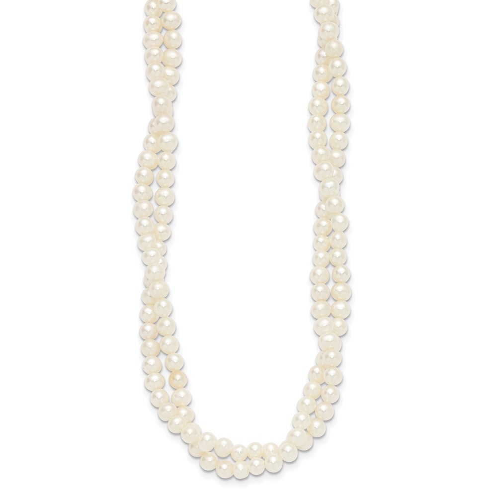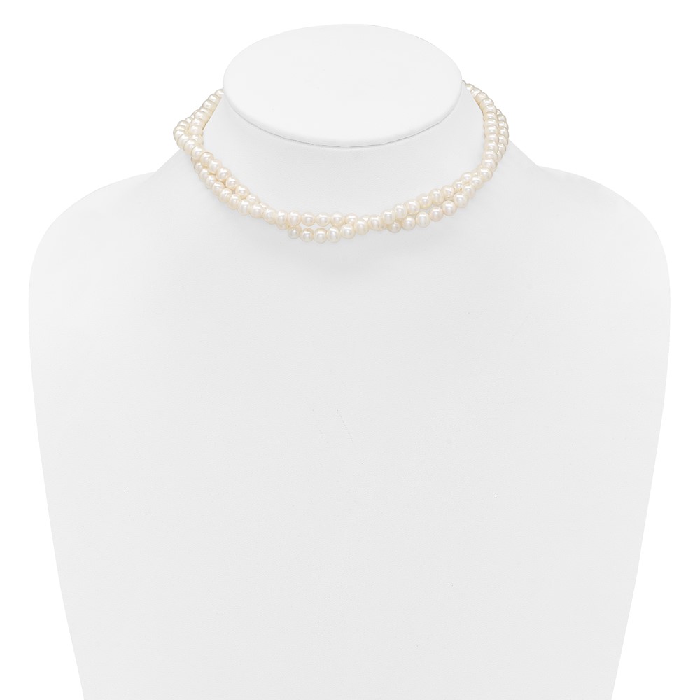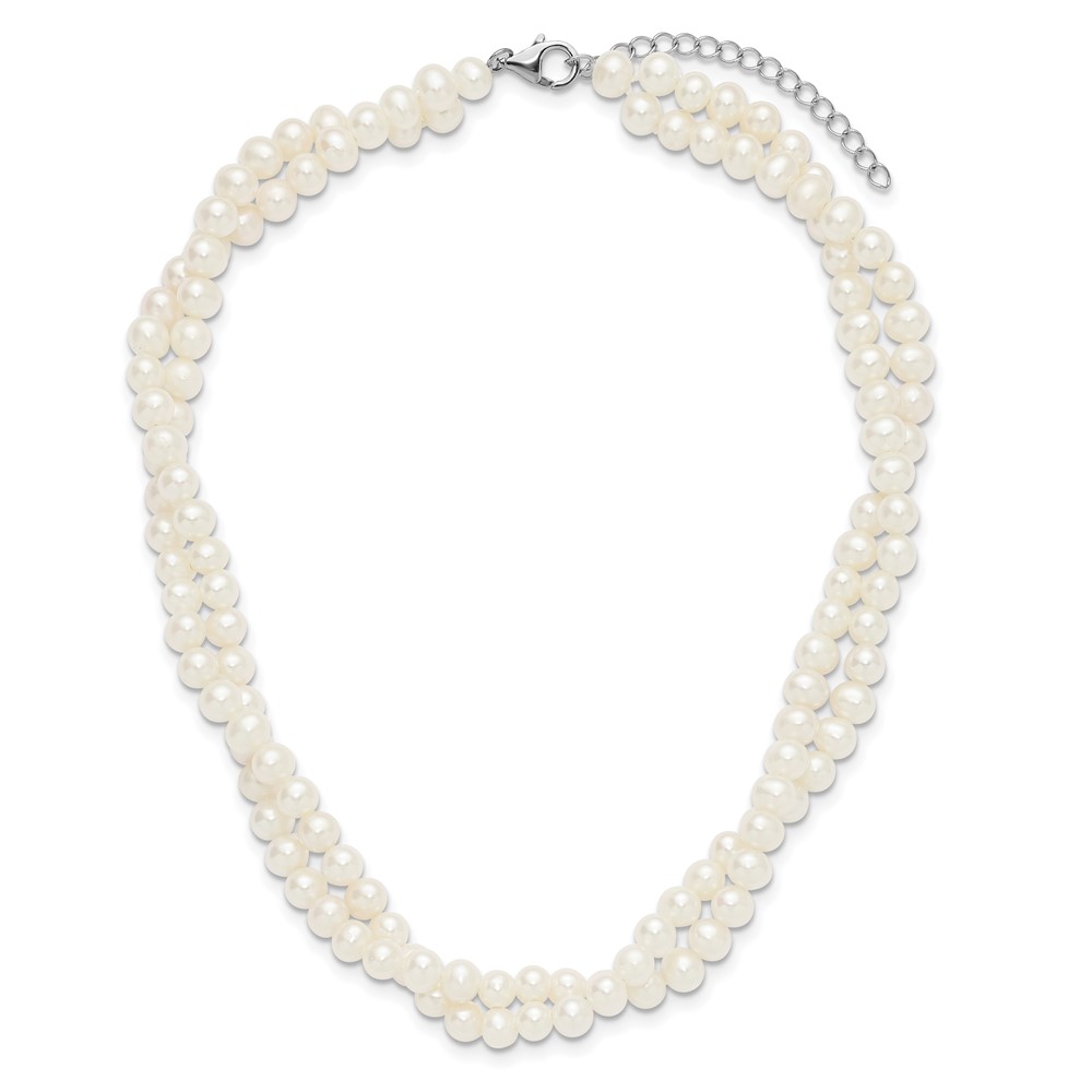 Sterling Silver Rhodium-plated 5-6mm Semi-Round White Freshwater Cultured Pearl 2-Strand 14 inch with 2 inch Extender Choker