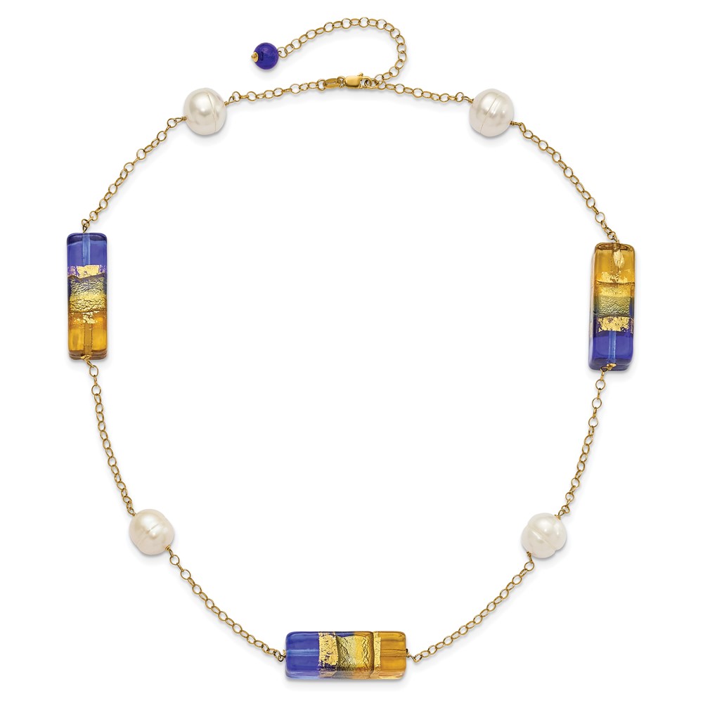 14ky FW Cultured Pearl & Murano Glass Bead Necklace