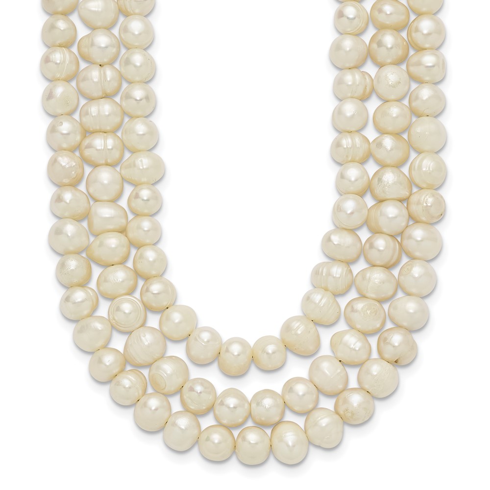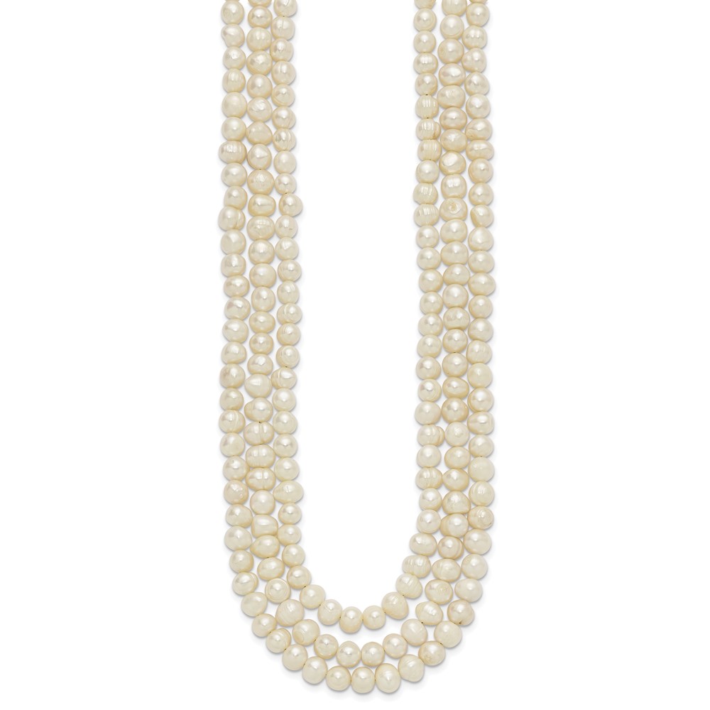 Sterling Silver Triple Strand White FW Cultured Pearl Necklace
