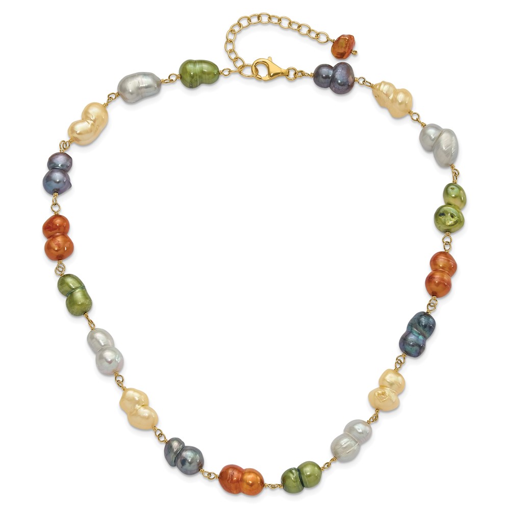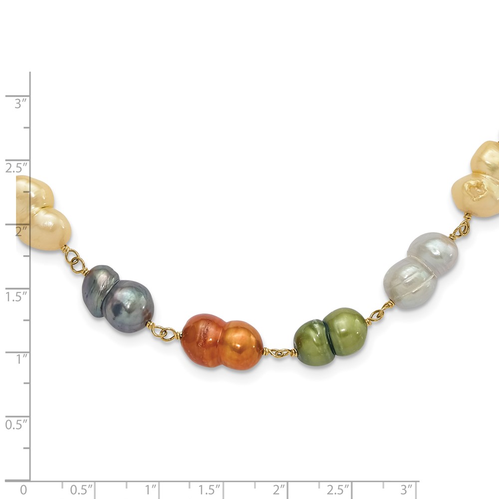 Sterling Silver Gold-tone Twin Multicolor 9.5-11mm Freshwater Cultured Pearl w/ 1.5in ext Necklace